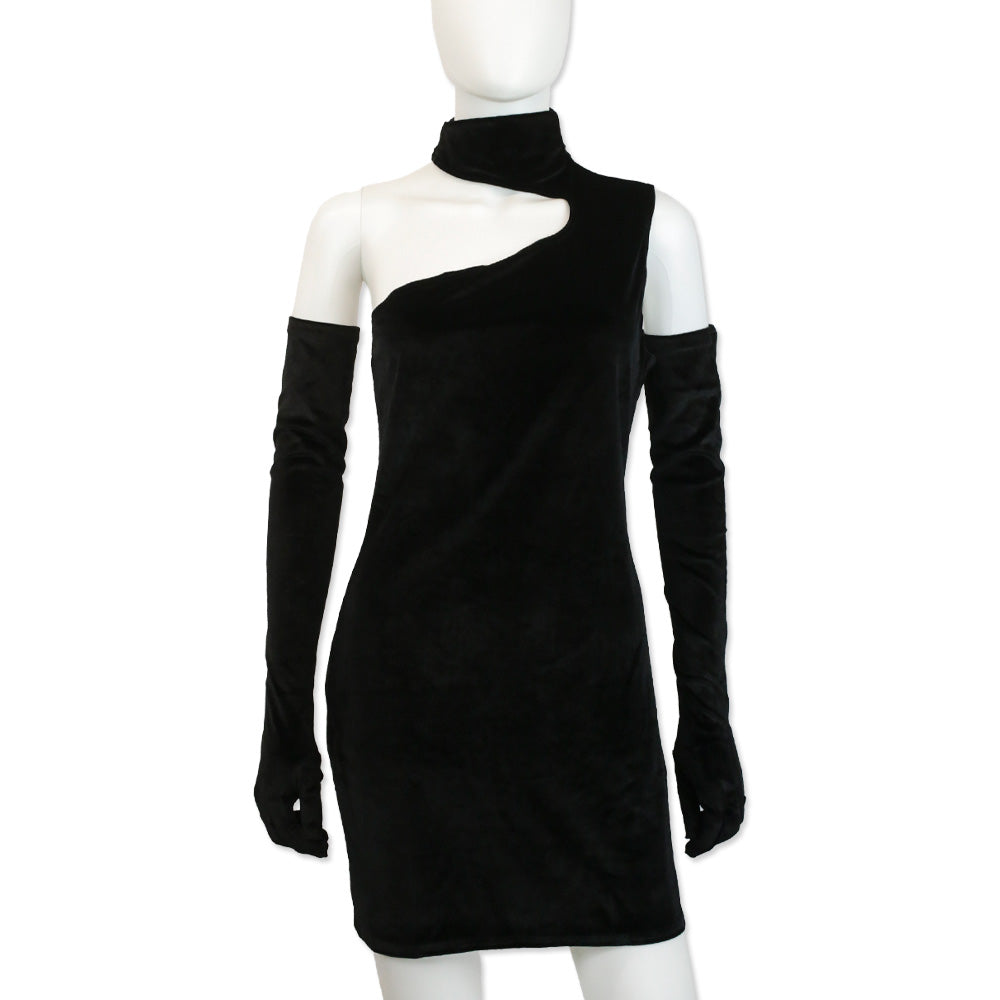 Miscreants Black Velvet Gina One Shoulder Mini Dress