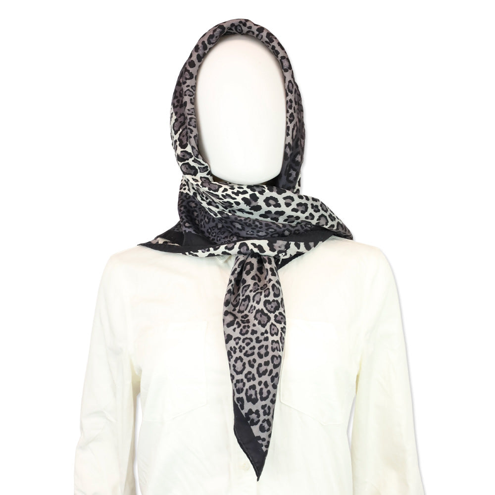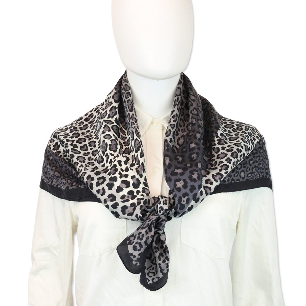 Oscar de la Renta Grey Leopard Print Silk Scarf