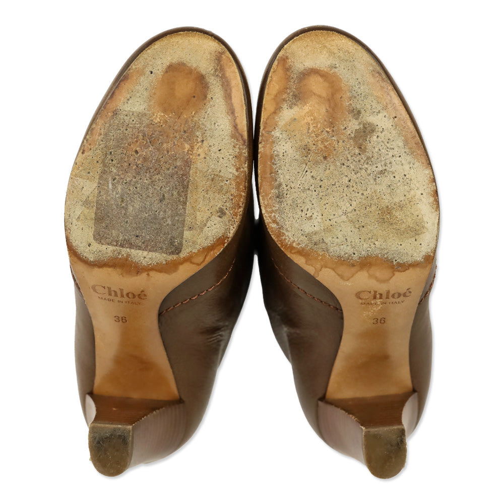 Chloe Brown Leather Buckle Mid Calf Heeled Boot