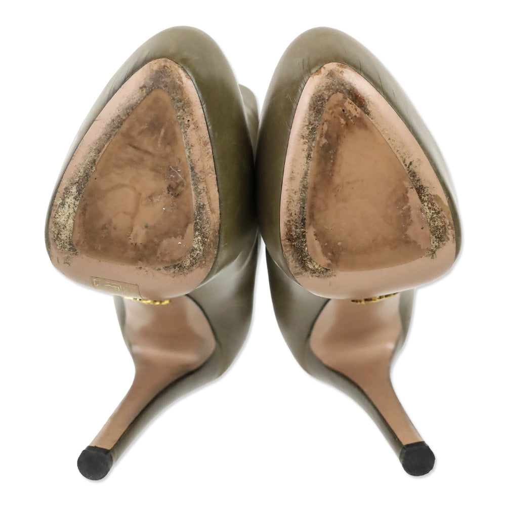 Prada Olive Taupe Leather Hidden Platform Ankle Bootie