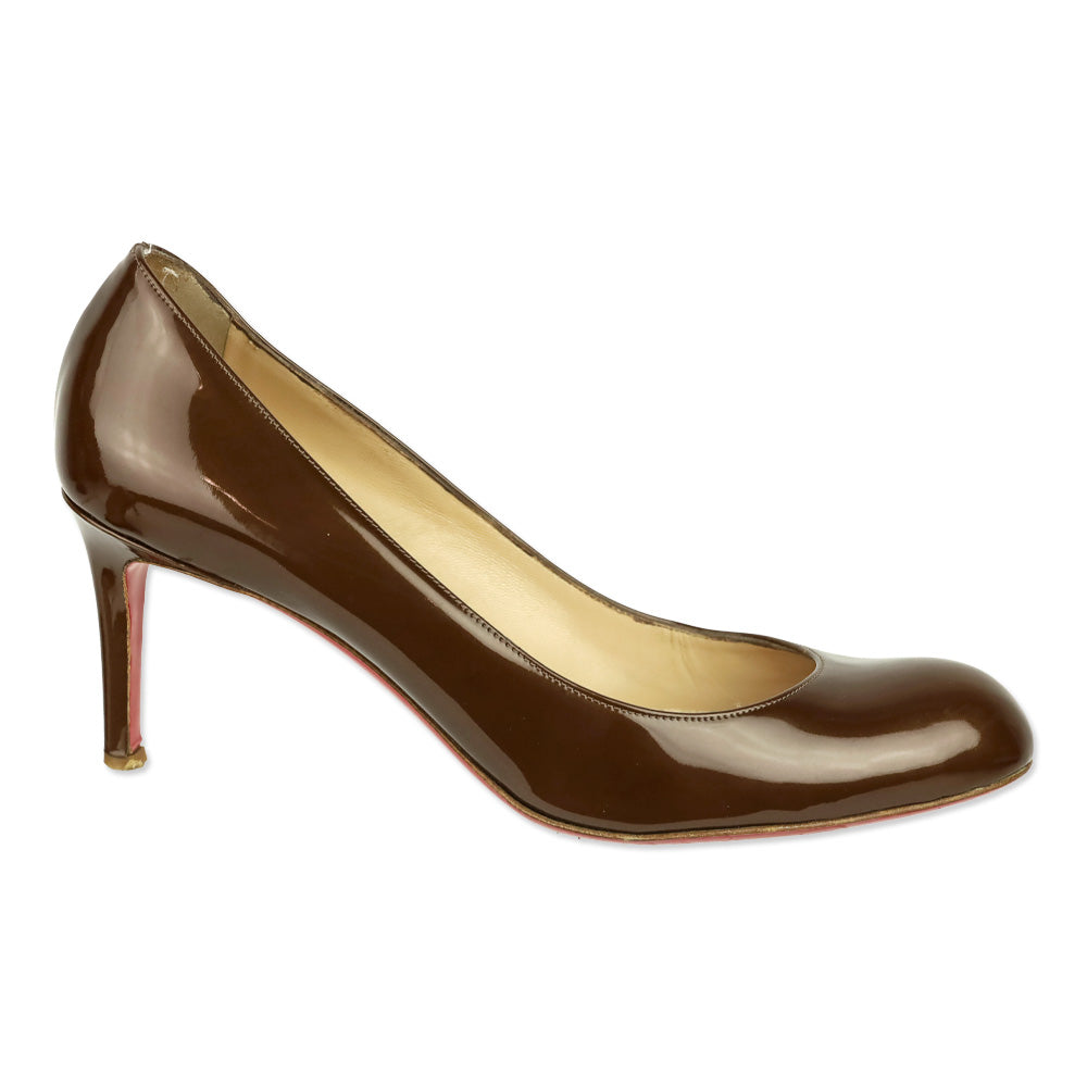 Christian Louboutin Brown Patent Calf Simple Pump 70