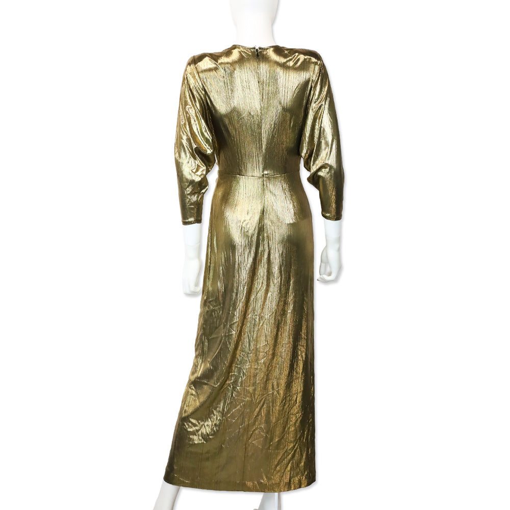 Smythe Metallic Gold Sharp Shoulder Twist Midi Dress