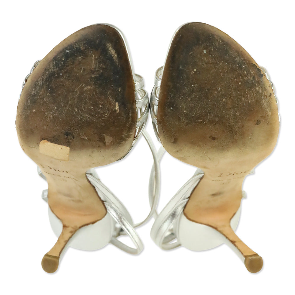 Dior Metallic Silver Leather Ankle Strap Sandal