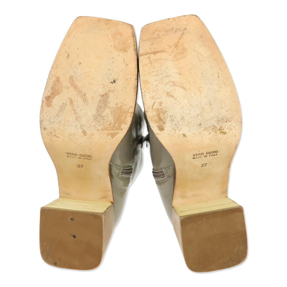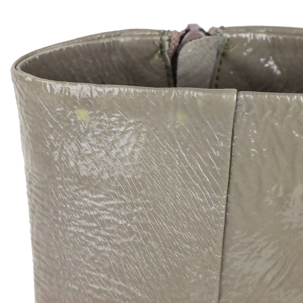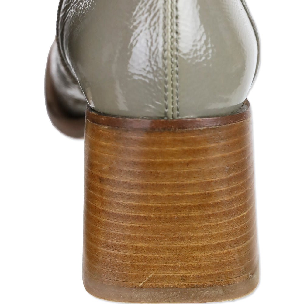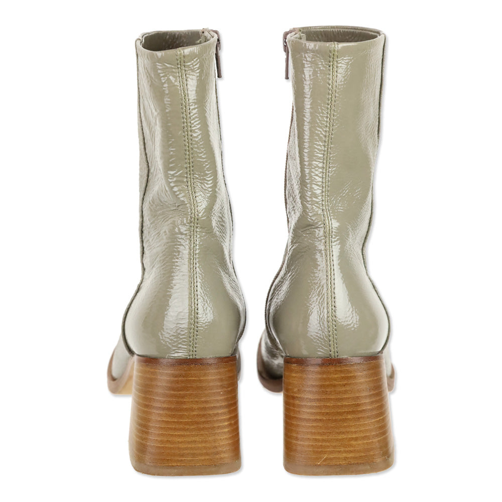 275 Central Grey Crinkle Patent Leather Square Toe Block Heel Ankle Boots