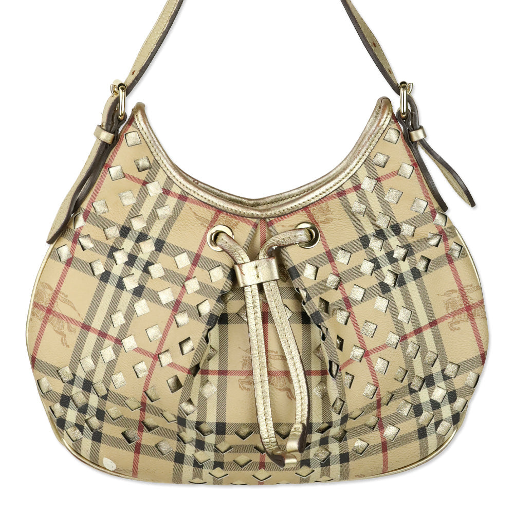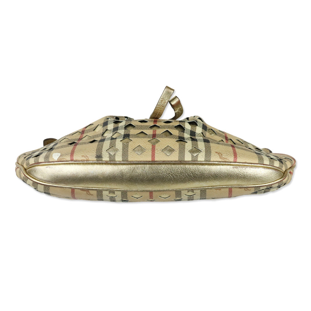 Burberry Haymarket Perforated Coated Canvas Gold Trim Claudia Hobo Bag