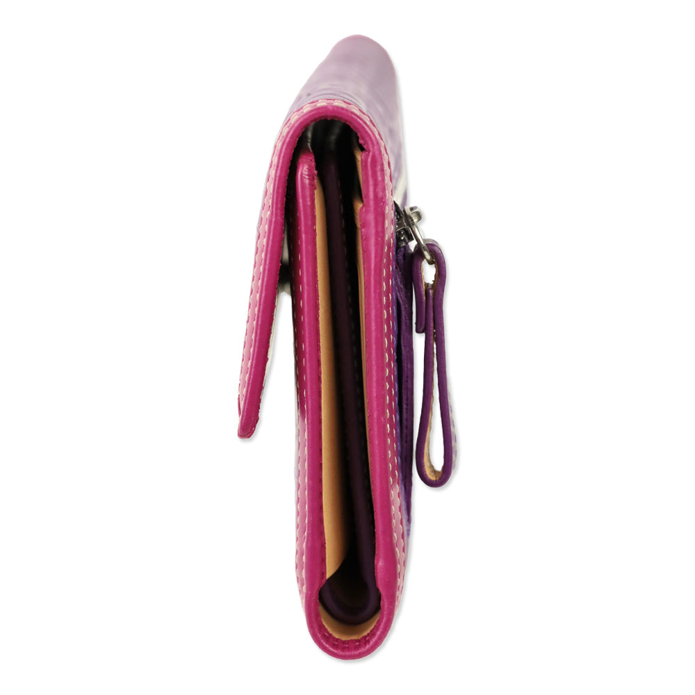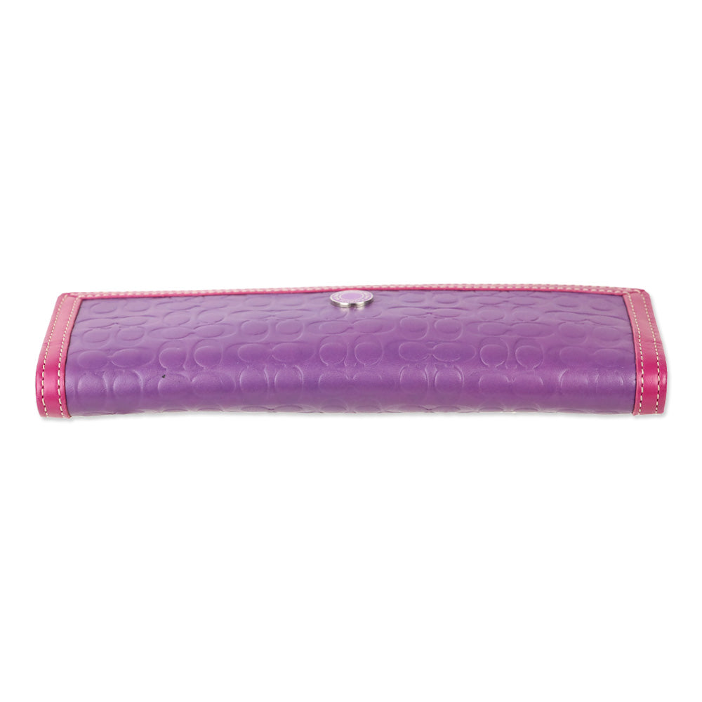 Coach Purple Leather Signature Monogram Embossed Colorblock Trifold Checkbook Wallet