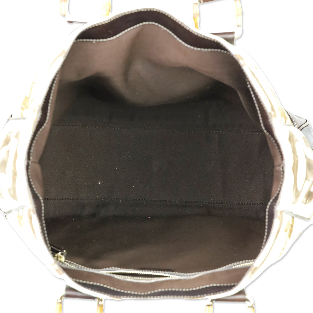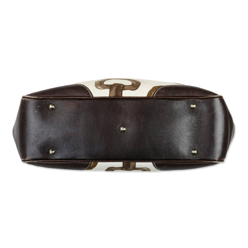 The Gucci Bamboo Horsebit Canvas Tote combines timeless Gucci craftsmanship with functional elegance. Crafted from durable brown canvas with leather trim, this structured tote features silver-tone hardware, protective feet, and a spacious interior with a zipper pocket for everyday convenience.