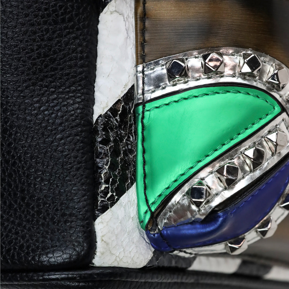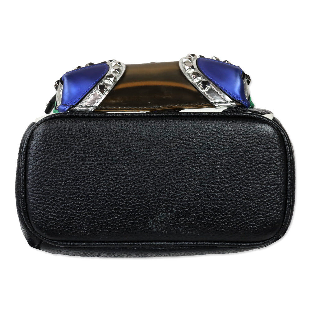 The MCM X-Mini Stark Striped Roboter Mixed-Media Backpack brings a playful twist to a classic silhouette. Crafted from multicolor leather and PVC, this compact design features the signature Roboter motif, silver-tone hardware, and a suede-lined interior.