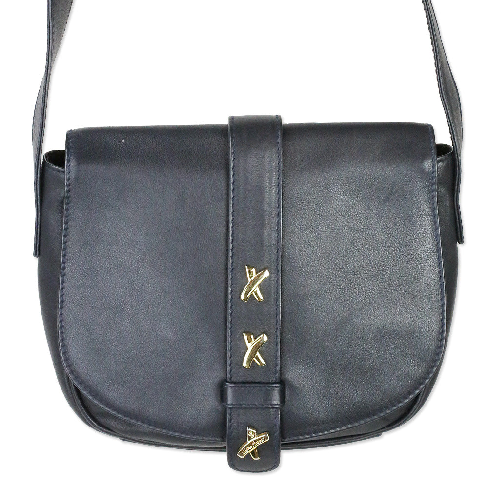 Paloma Picasso Navy Leather Flap Crossbody Saddle Bag