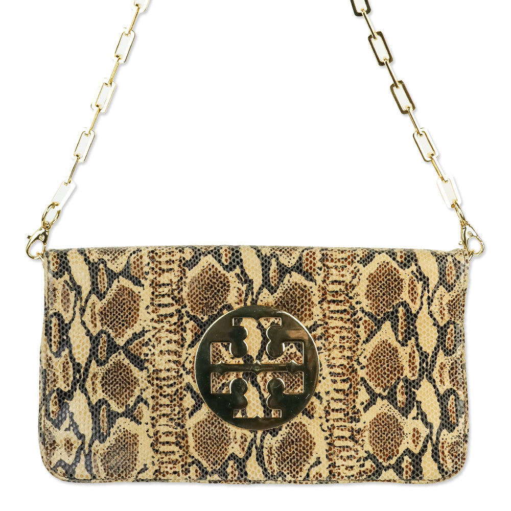 Tory Burch Snakeskin Print Leather Bombe Reva Clutch
