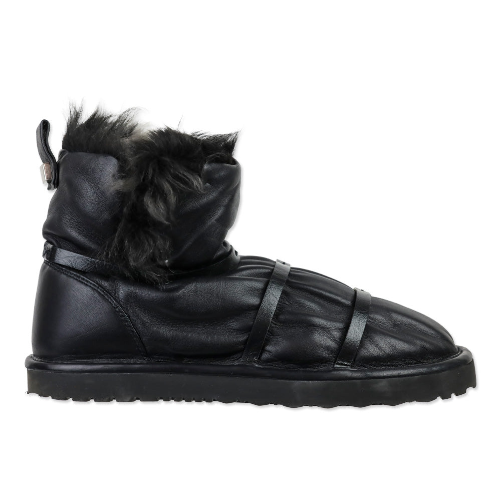 Stuart Weitzman Janica Black Puffer Leather Fur-Lined Ankle Bootie