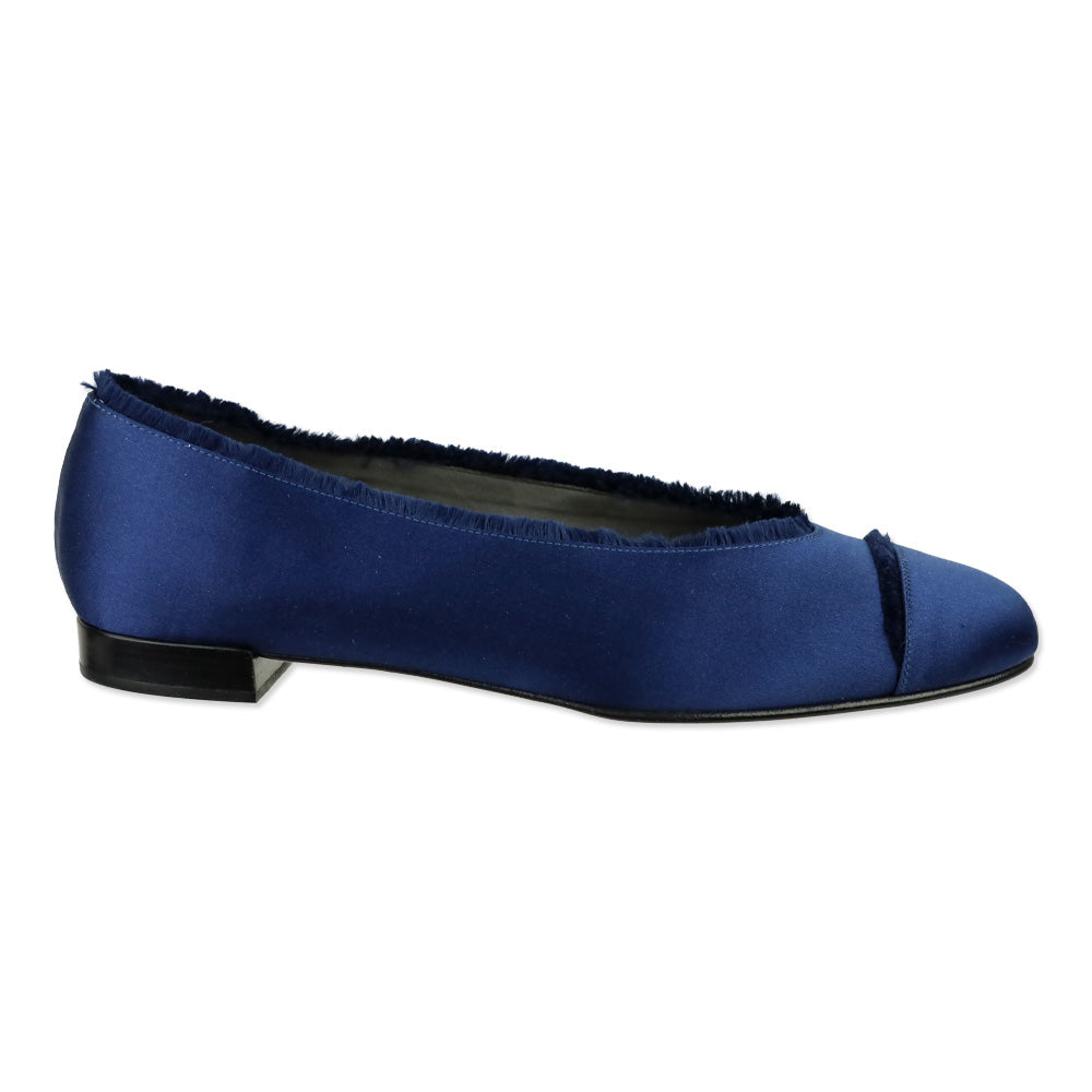 Stuart Weitzman Captain Blue Satin Fur Trim Ballet Flats
