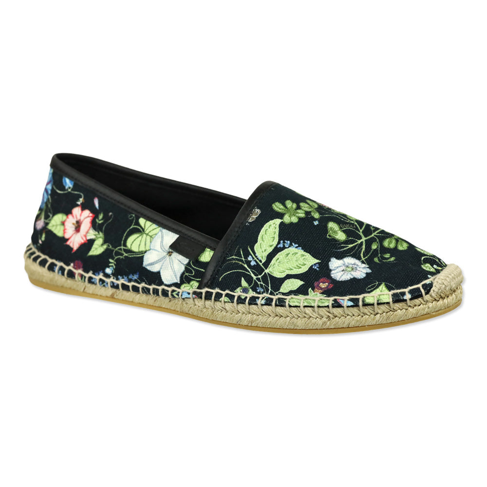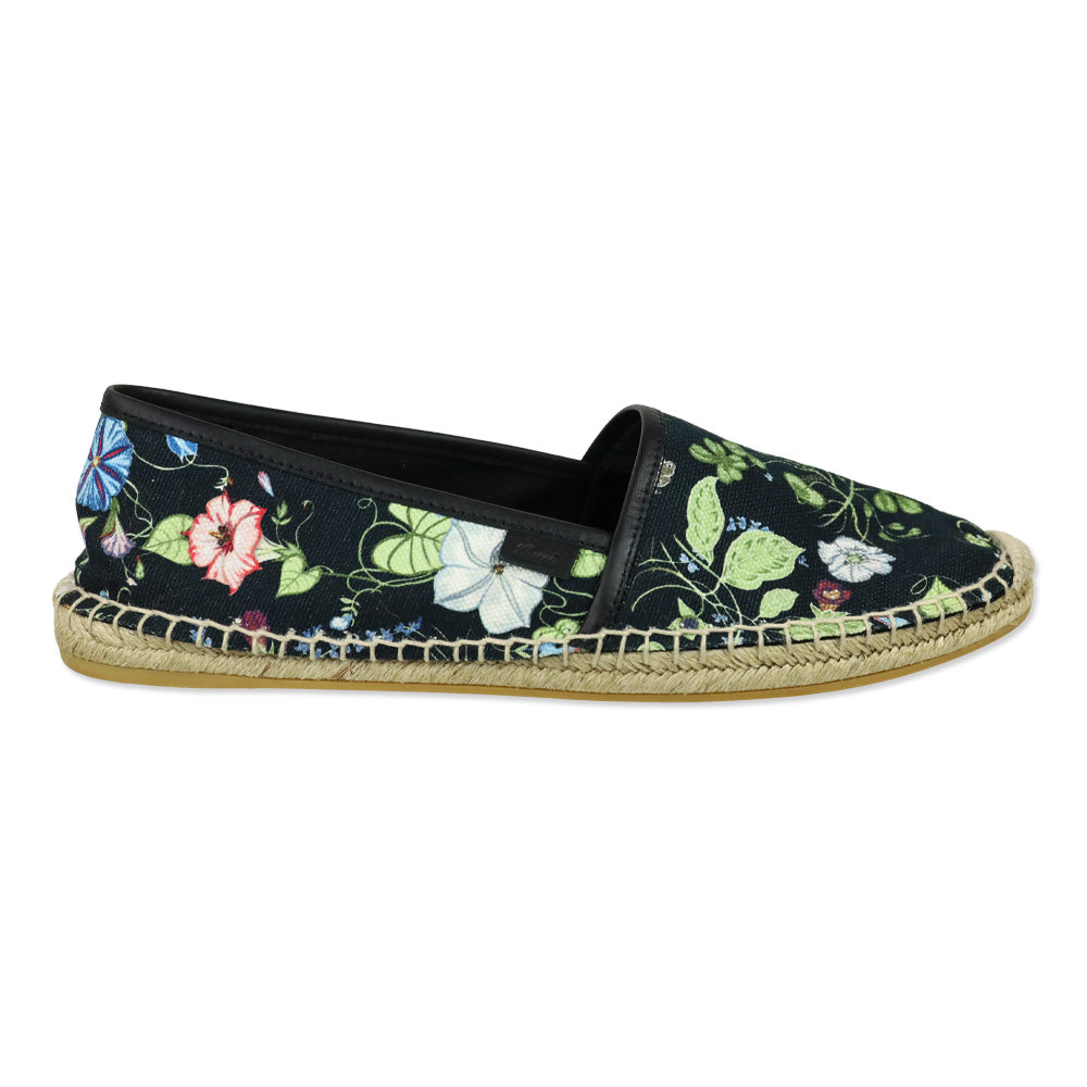 Gucci Black Flora Kris Knight Print Canvas Espadrille Slip-On Flats