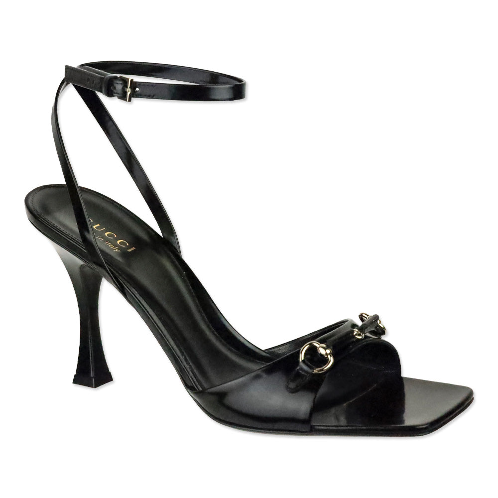 Gucci Black Patent Leather Horsebit Selene 85 Sandals