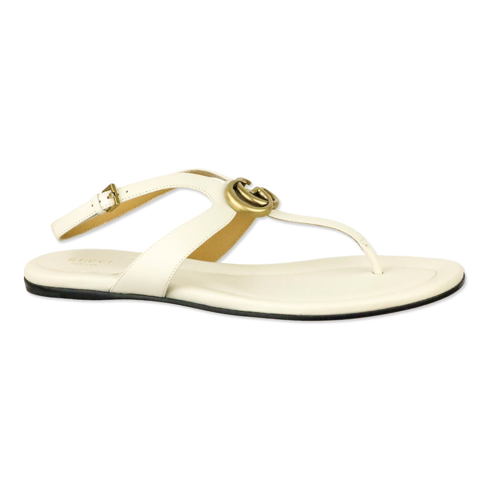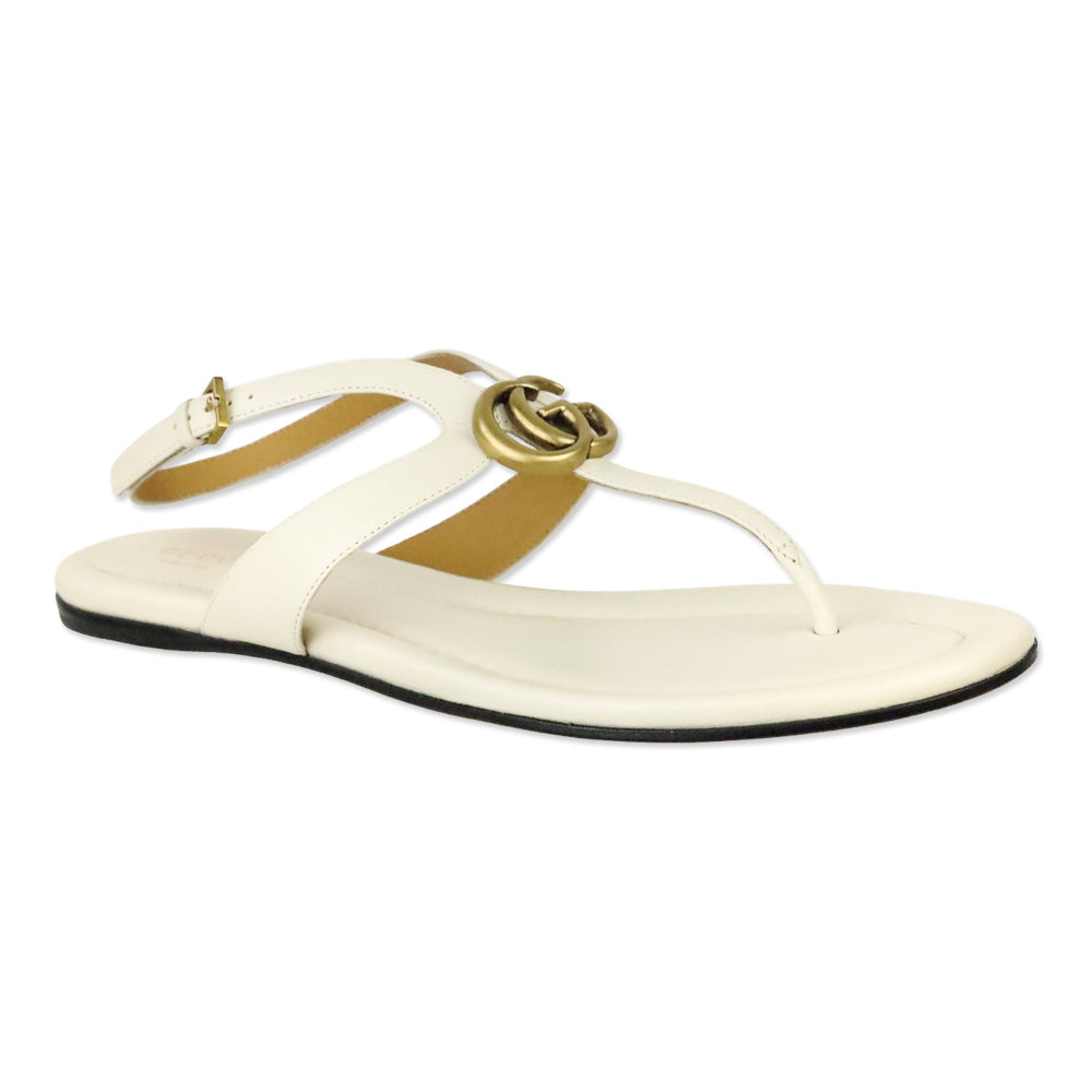 Gucci GG Marmont Mystic White Leather Thong Sandals