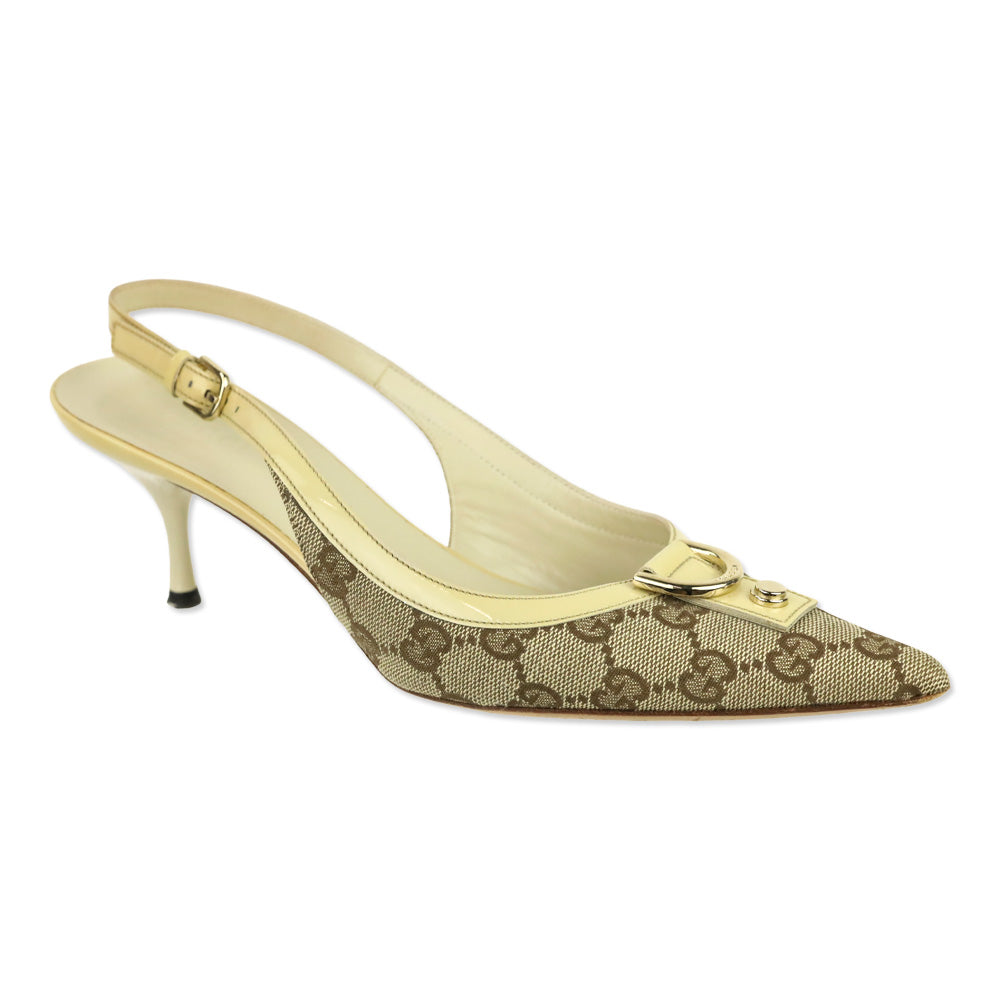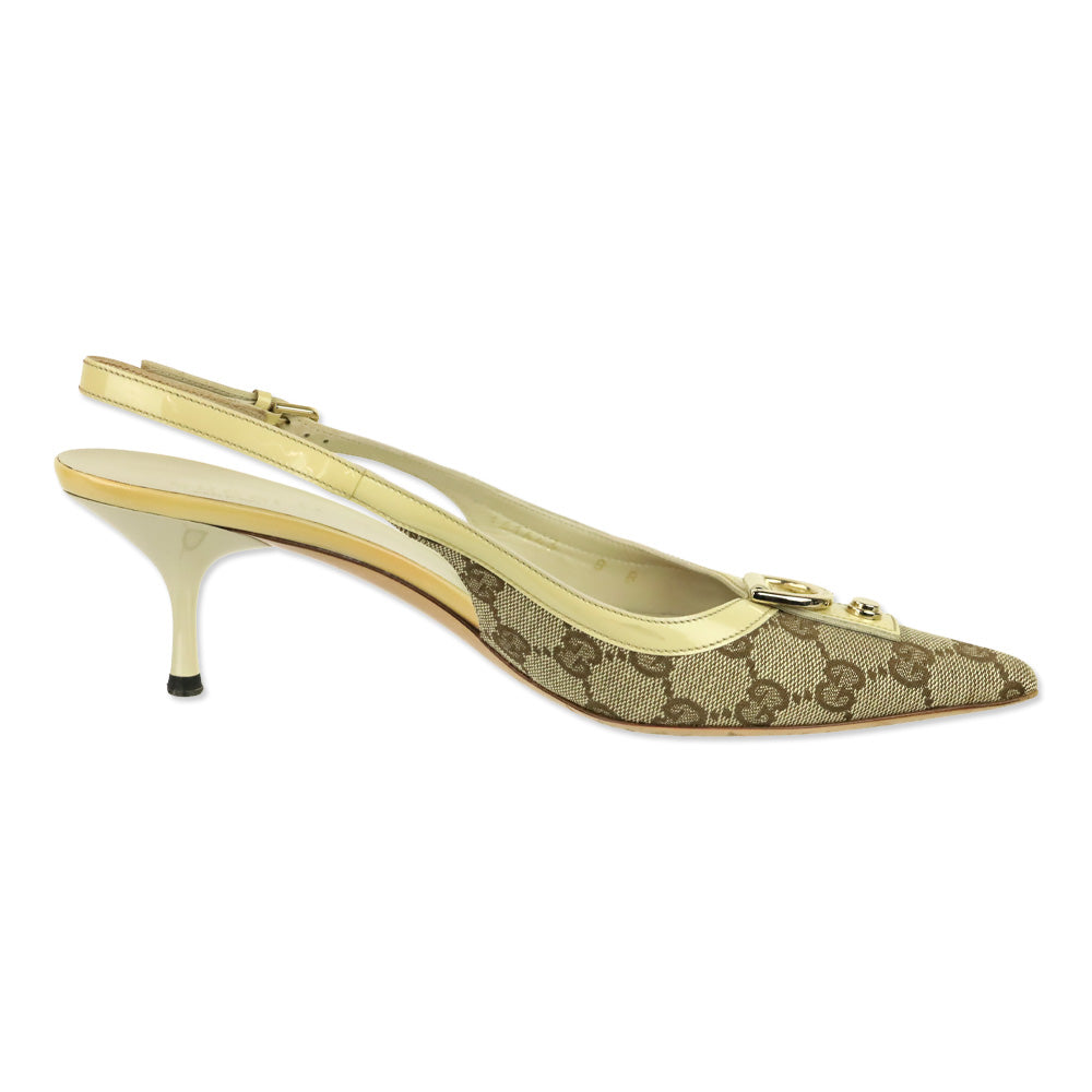 Gucci Monogram Canvas Beige Patent Slingback Pumps