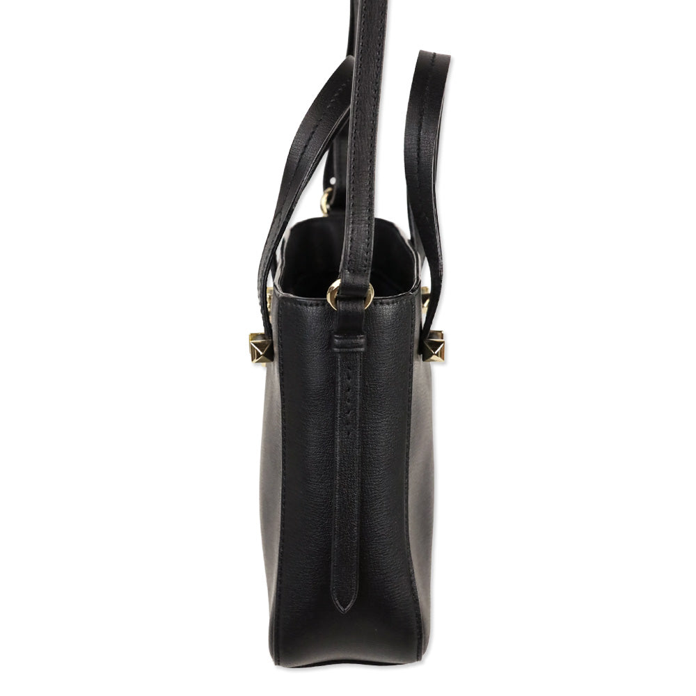 Exude modern edge with the Jimmy Choo JC Mini Tote Bag. Crafted in Italy from premium black calf leather, this compact silhouette is defined by its distressed gold-tone 'JC' emblems and hardware studs along the sides. The versatile design features a classic double-handle top and a detachable, adjustable shoulder strap for multiple carrying options.