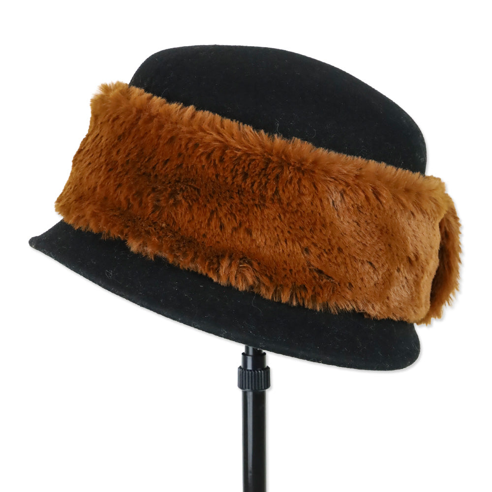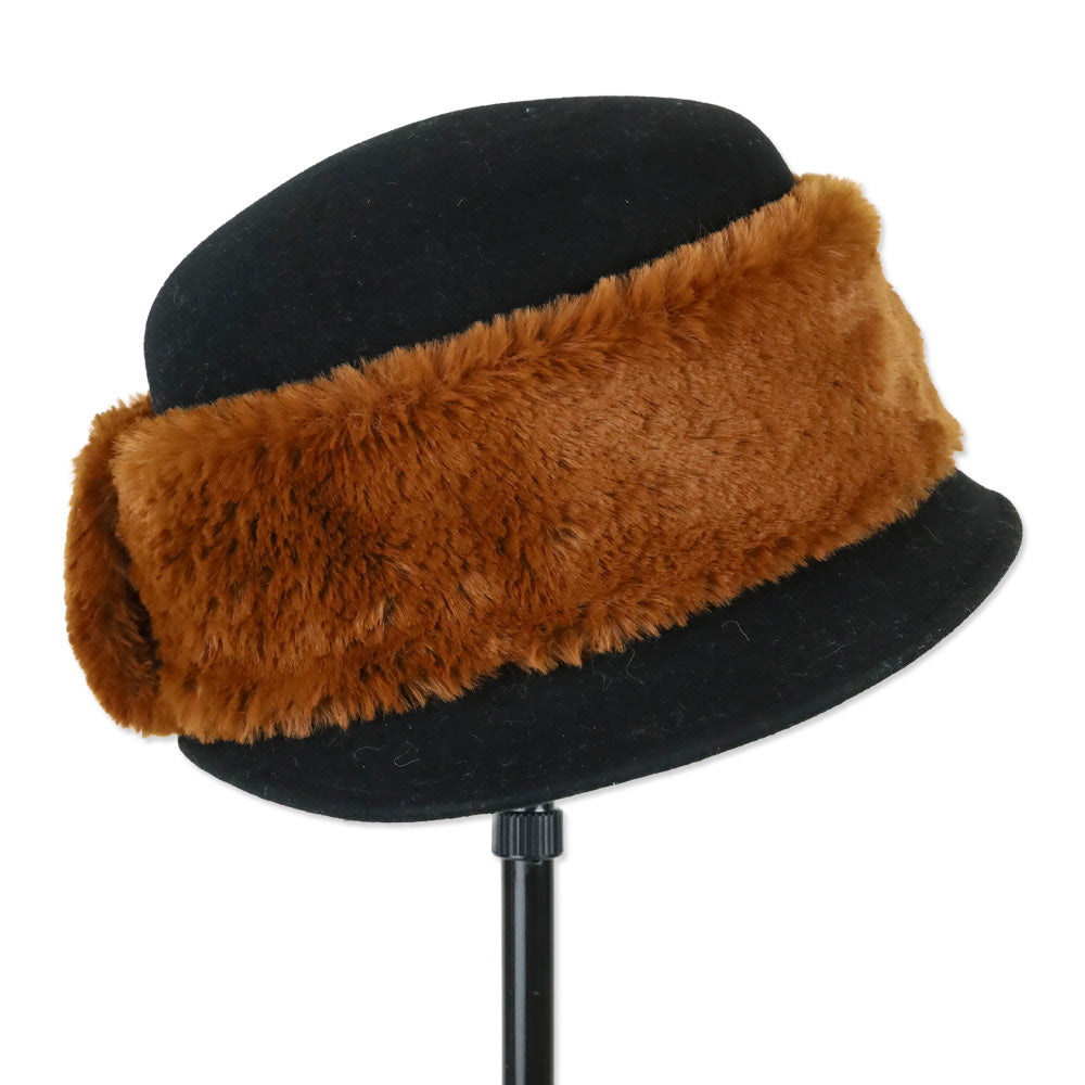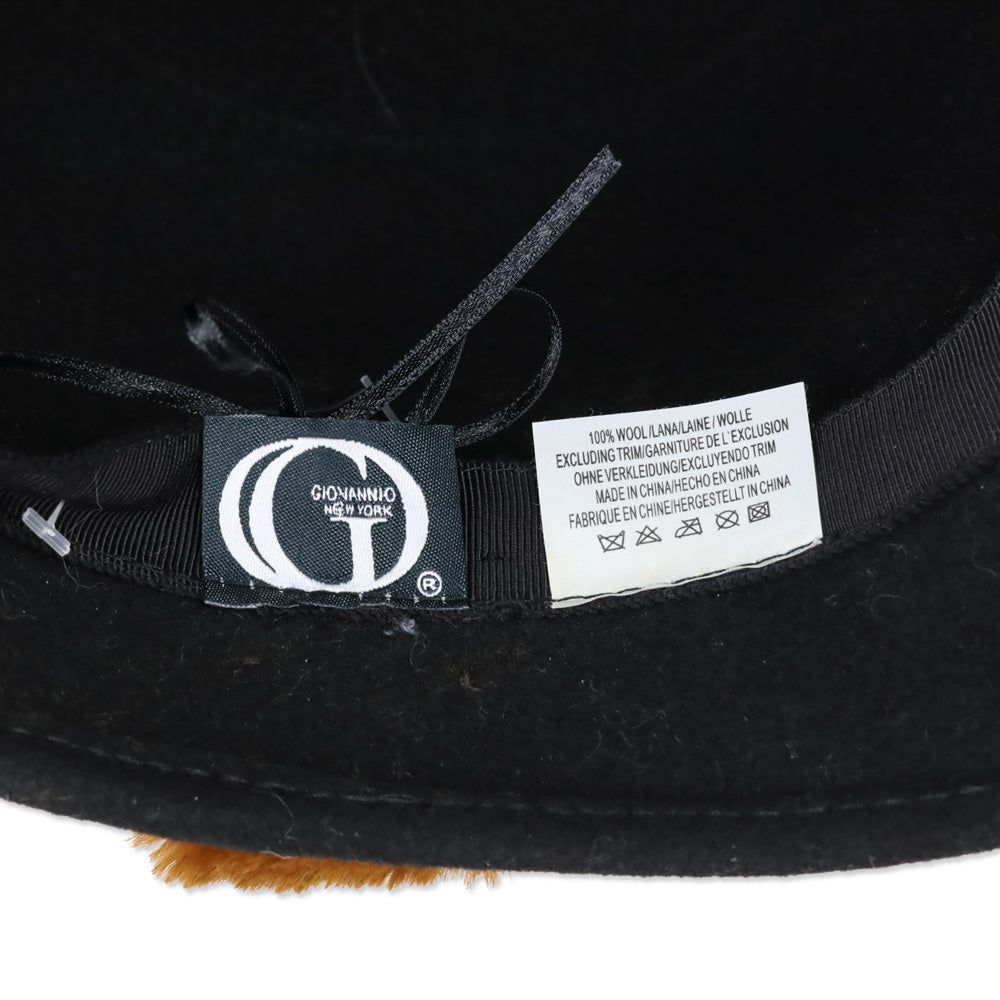 Gionannio New York Black Wool Brown Faux Fur Trim Hat