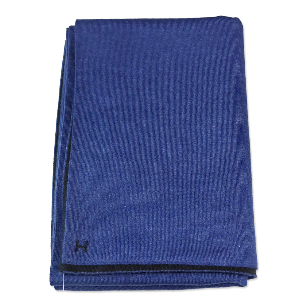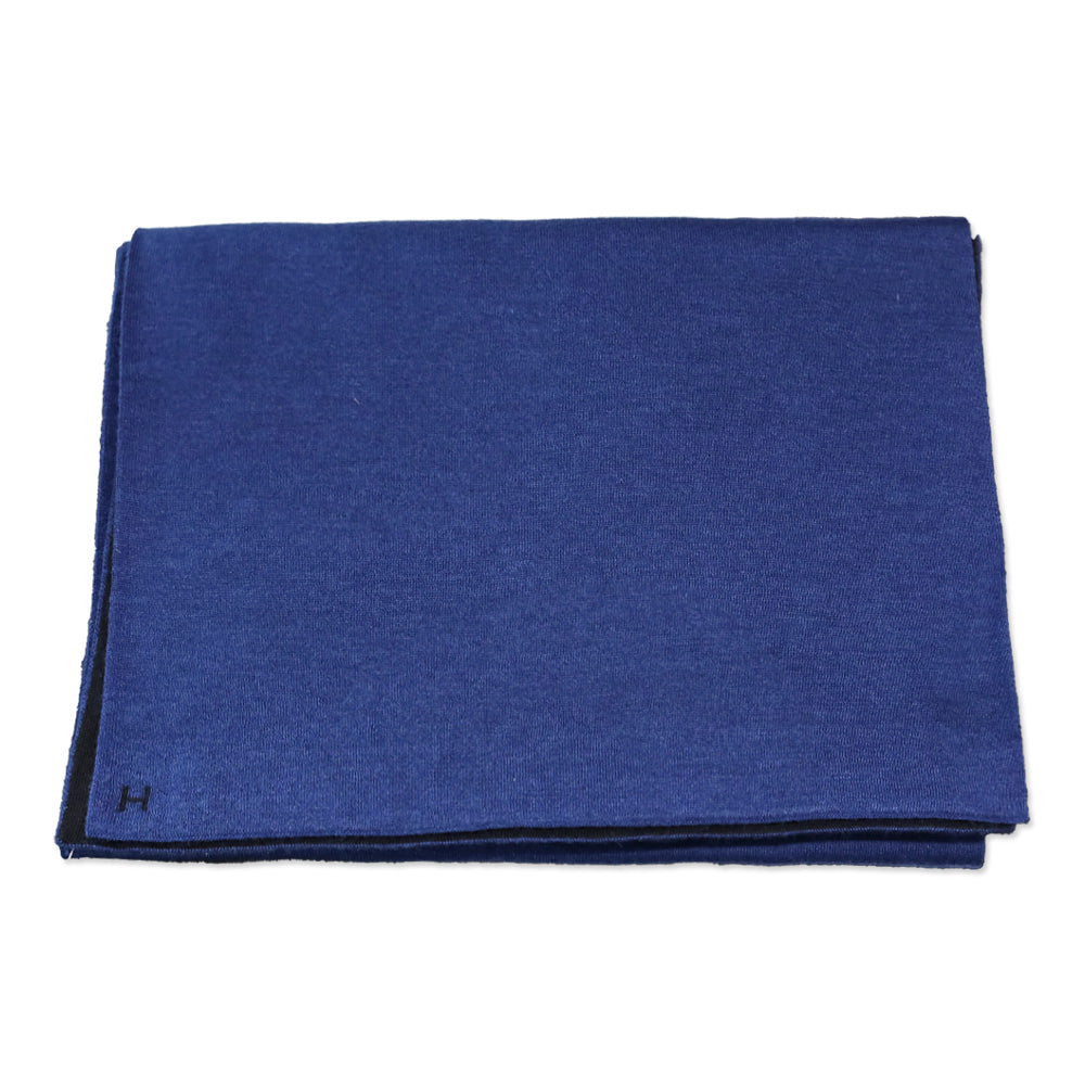 This authentic Hermès "Aller-Retour" Scarf is a luxurious and versatile accessory. Made in Italy from a blend of 70% cashmere and 30% silk, this scarf has a soft, lightweight feel. The two-tone, reversible design in black and blue allows for multiple styling options, essentially giving you two scarves in one. It is subtly finished with the signature "H" embroidery on each end, a mark of its refined craftsmanship.