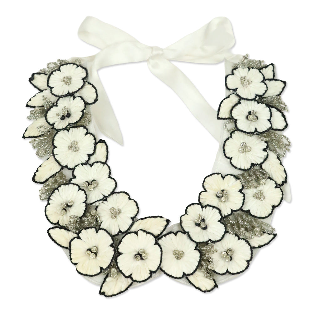 Anne Fontaine Vitoria Black/White Floral Tie Collar Necklace