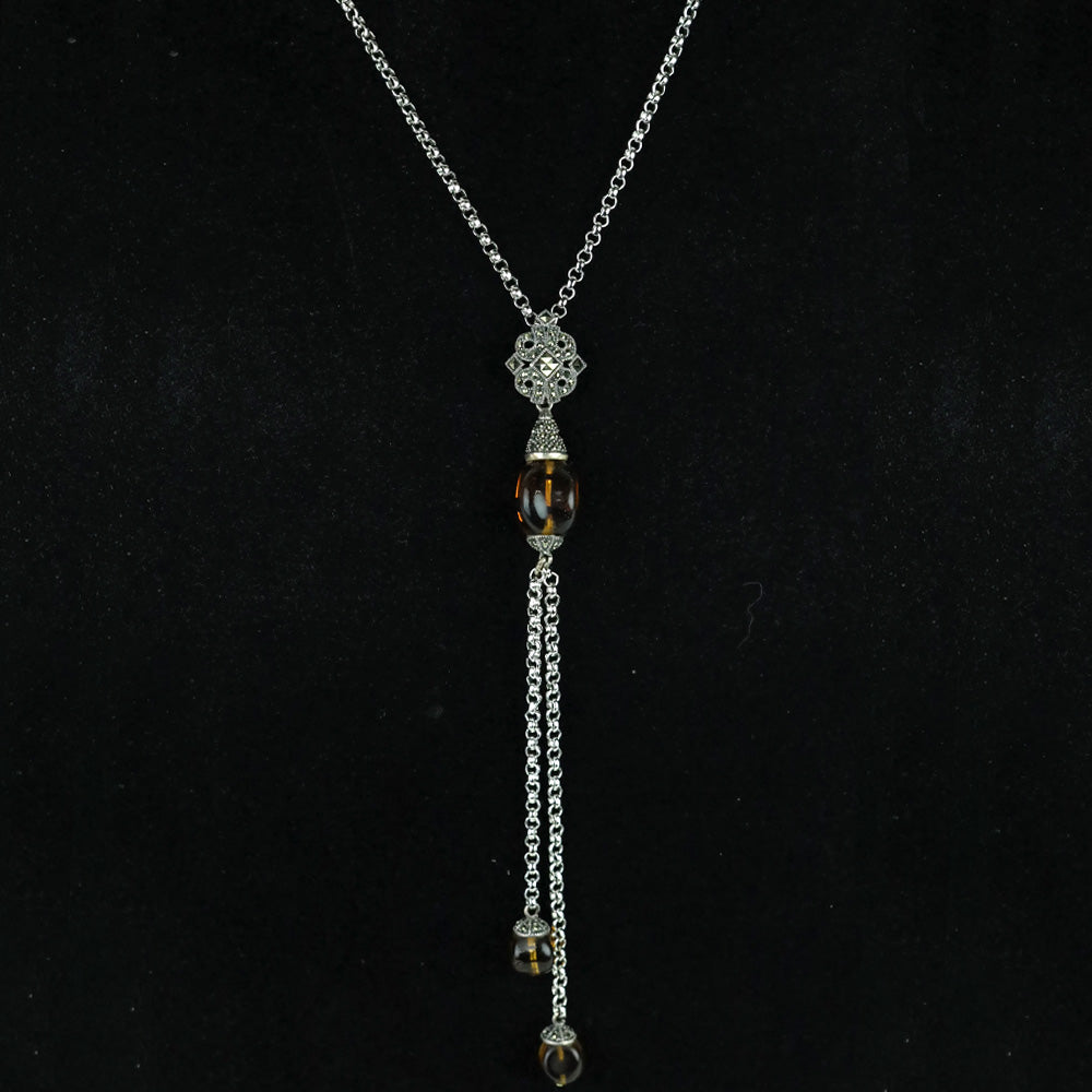 Judith Jack 925 Brown-Stone Marcasite Chain Y-Strand Necklace