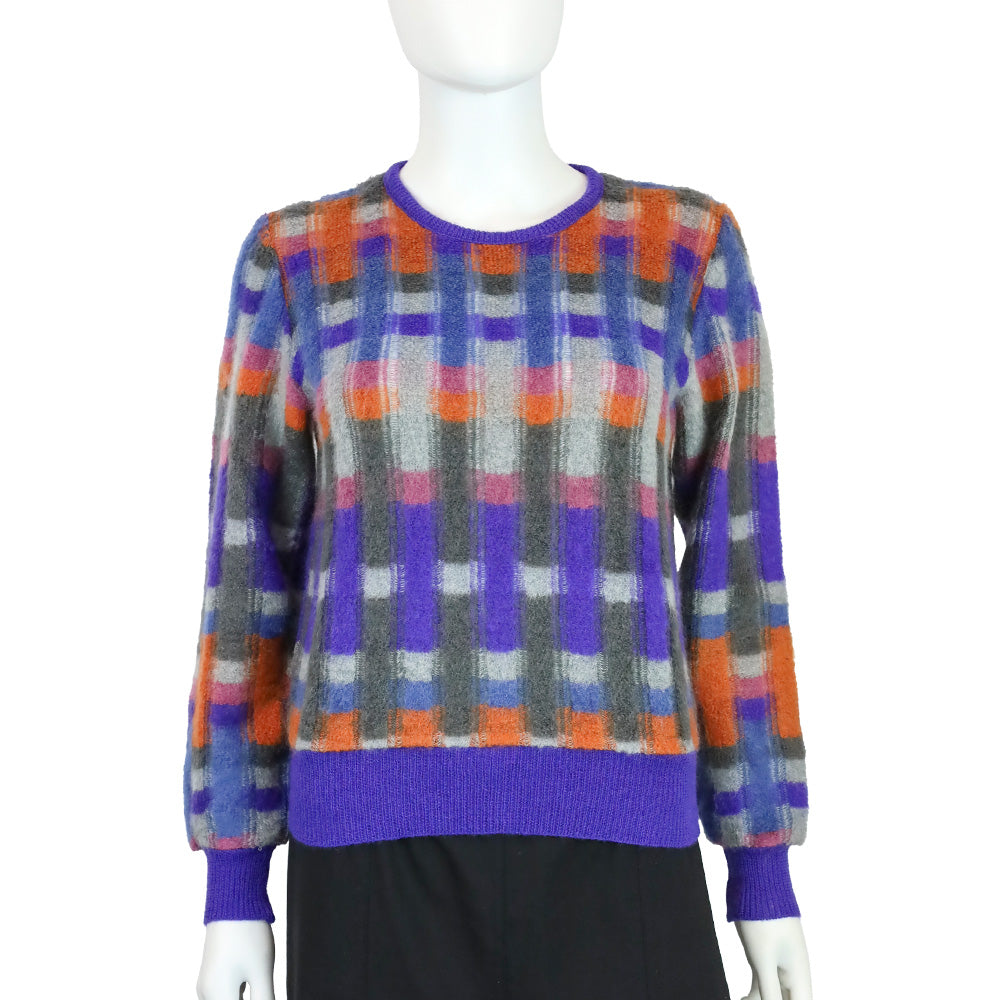 Missoni Purple Multi Plaid Mohair Knit Crewneck Sweater