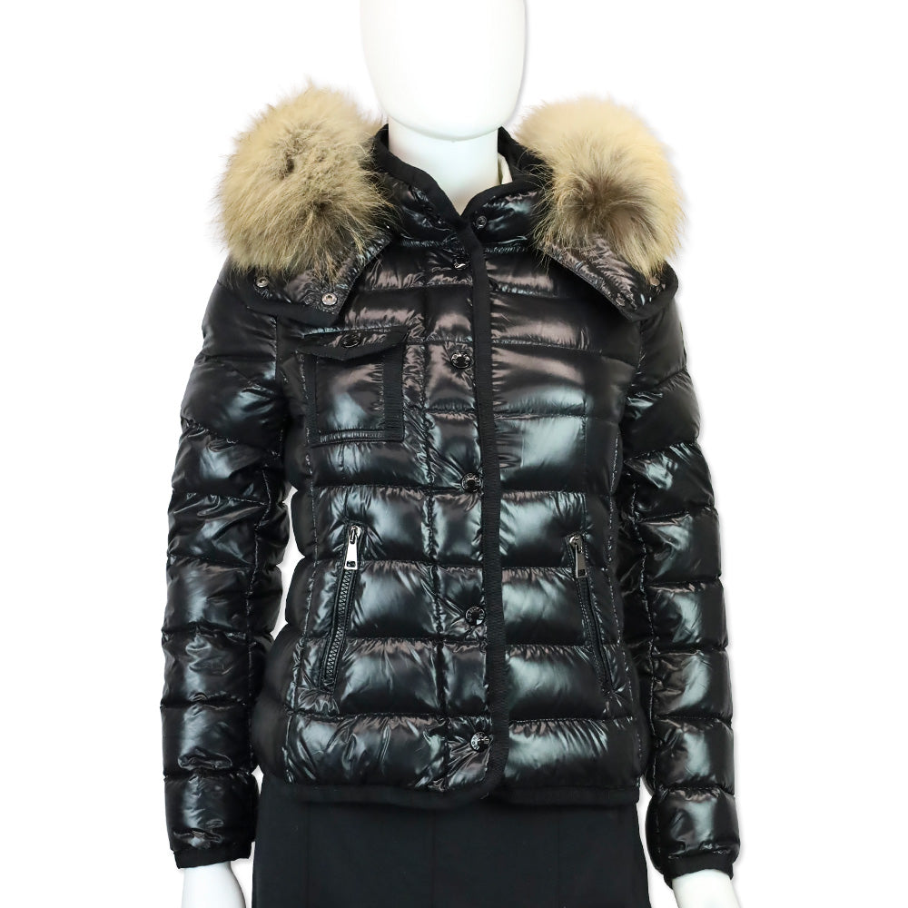Moncler Black Quilted Down Hooded Raccoon Fur-Trim Short Jacket