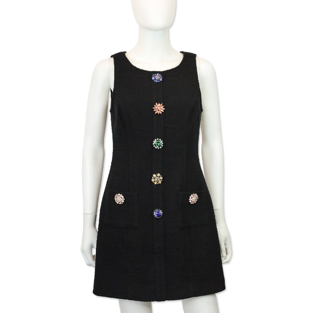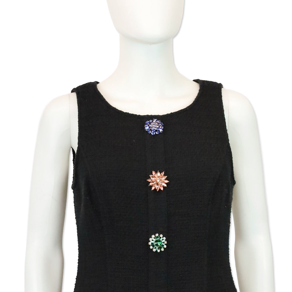 Cinq a Sept Randi Black Crystal Button Tweed Sleeveless Mini Dress