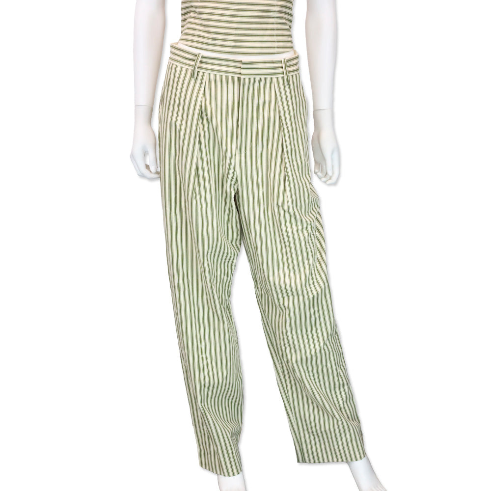 Mara Hoffman Marella Cream Olive Striped Pleated Wide-Leg Pants