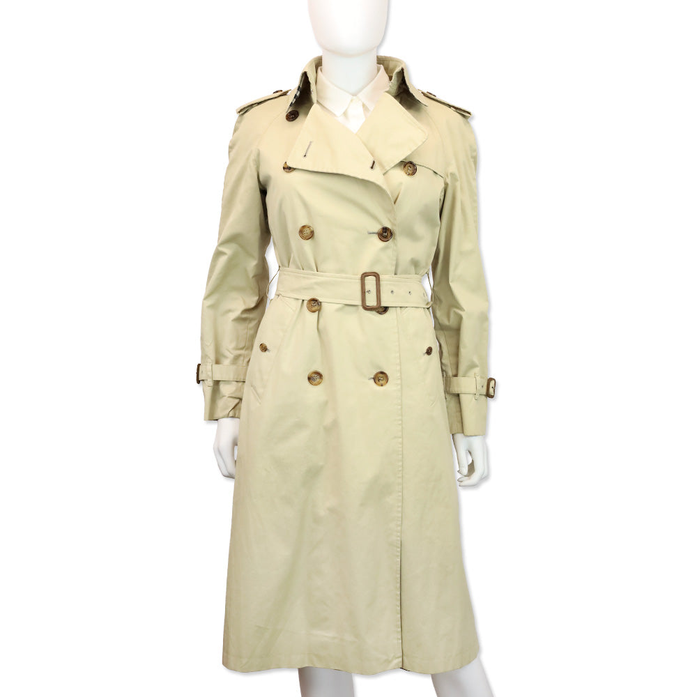 The Burberry Tan Wool-Lined Trench Coat offers timeless elegance with its classic silhouette and detachable wool lining for versatile wear. Finished with traditional trench details and subtle signs of patina, it’s a refined outerwear staple for cooler days.