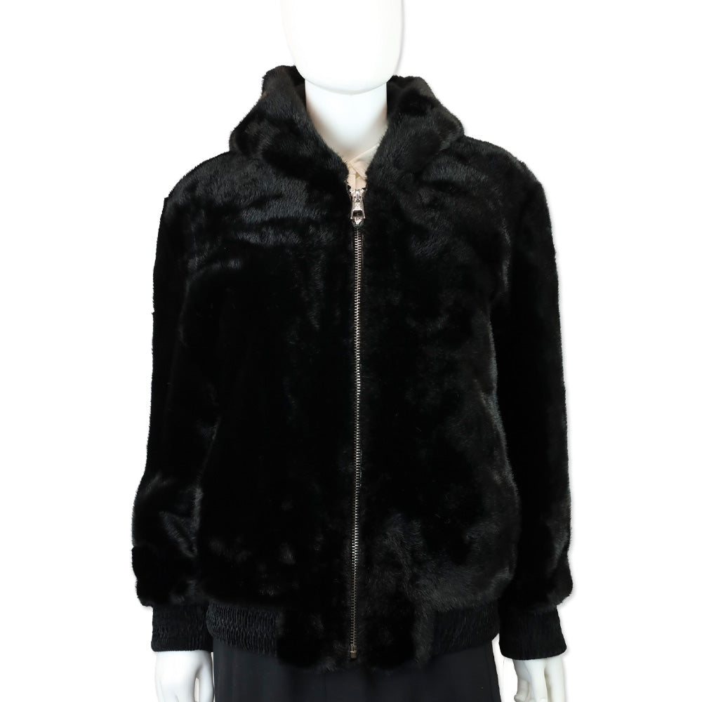 Royal Roland Black Faux Fur Zip-Up Jacket with Hoodie