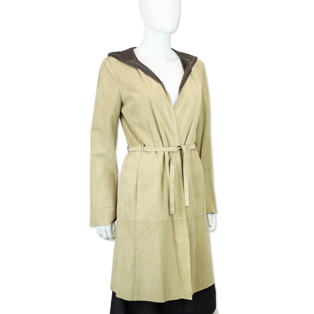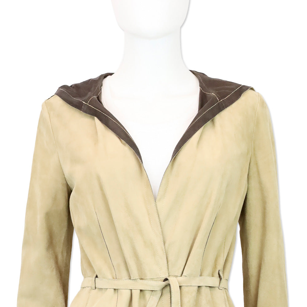 'S MaxMara Tan Suede Hooded Belted Coat