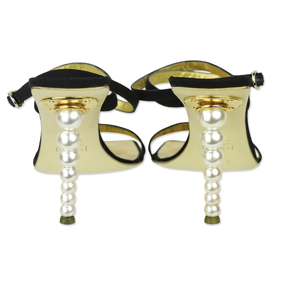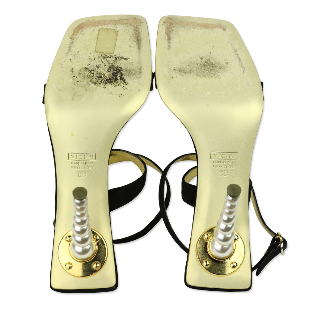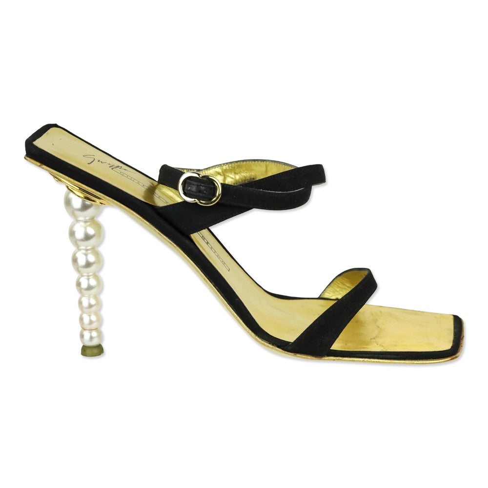 Giuseppe Zanotti Black Ankle-Strap Sandal with Pearl Heel