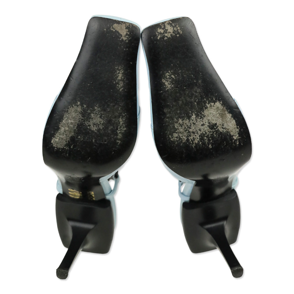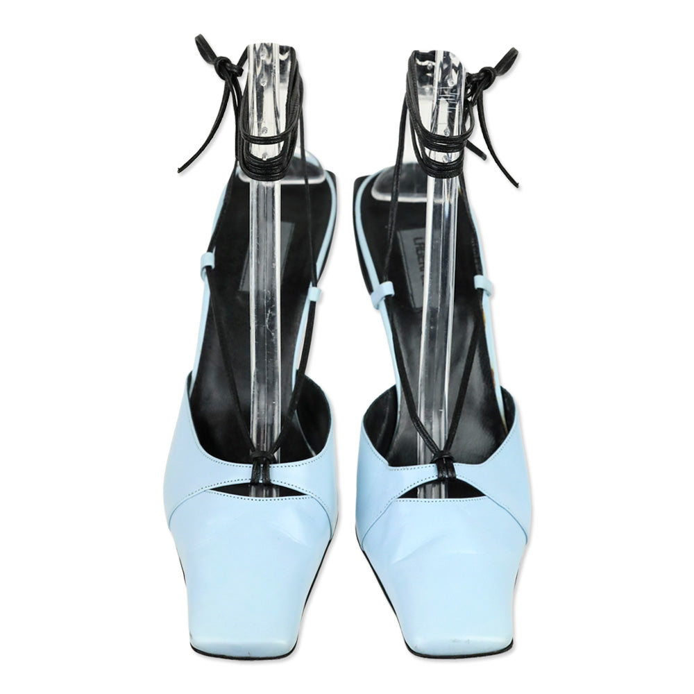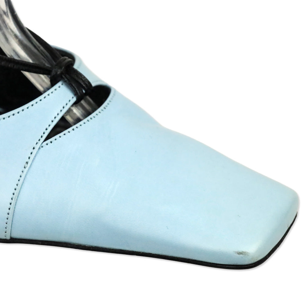 Karl Lagerfeld Vintage Blue Leather Square Toe Strappy Sandal