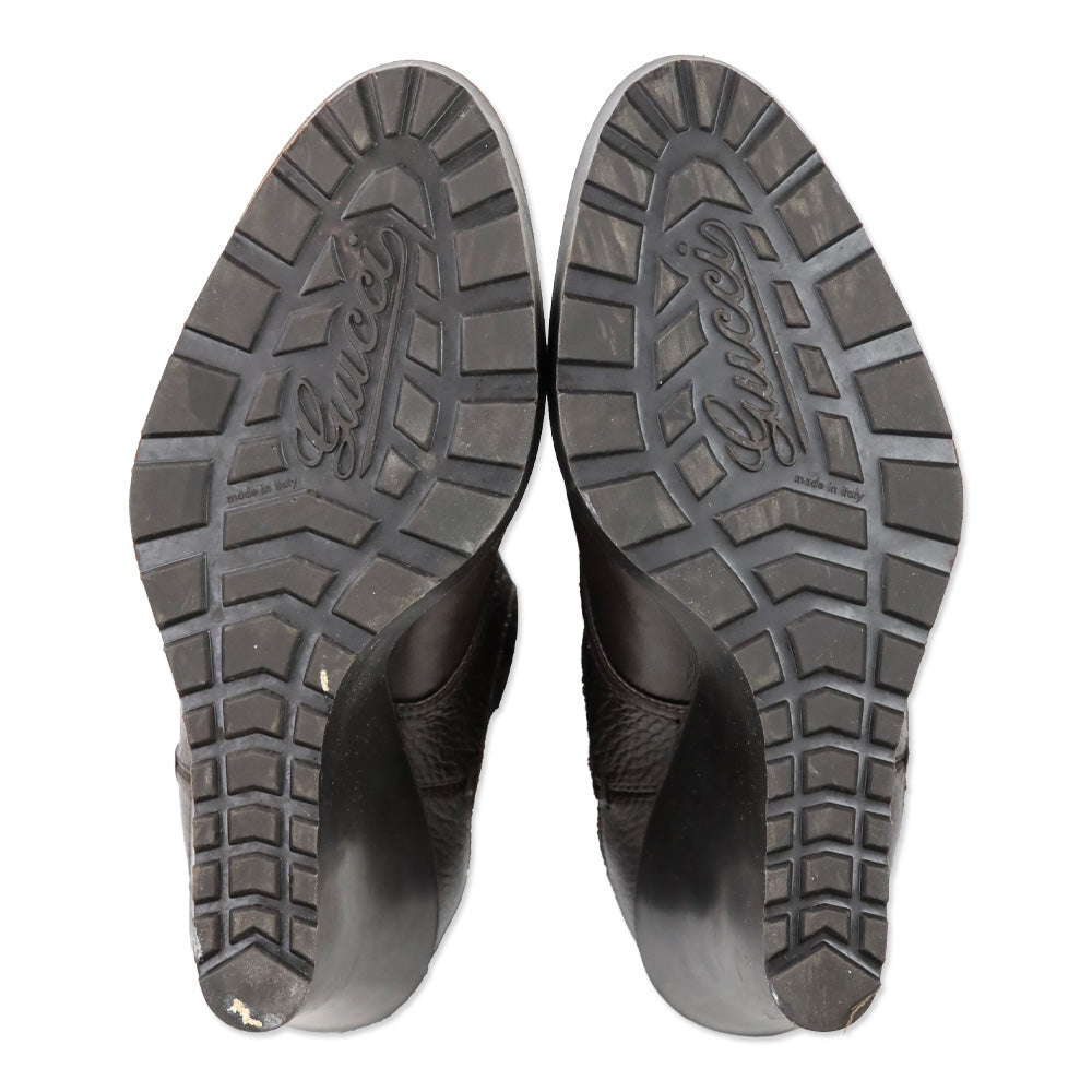 Gucci Hysteria Brown Ribbed Knit Sock Leather GG Logo Wedge Boots
