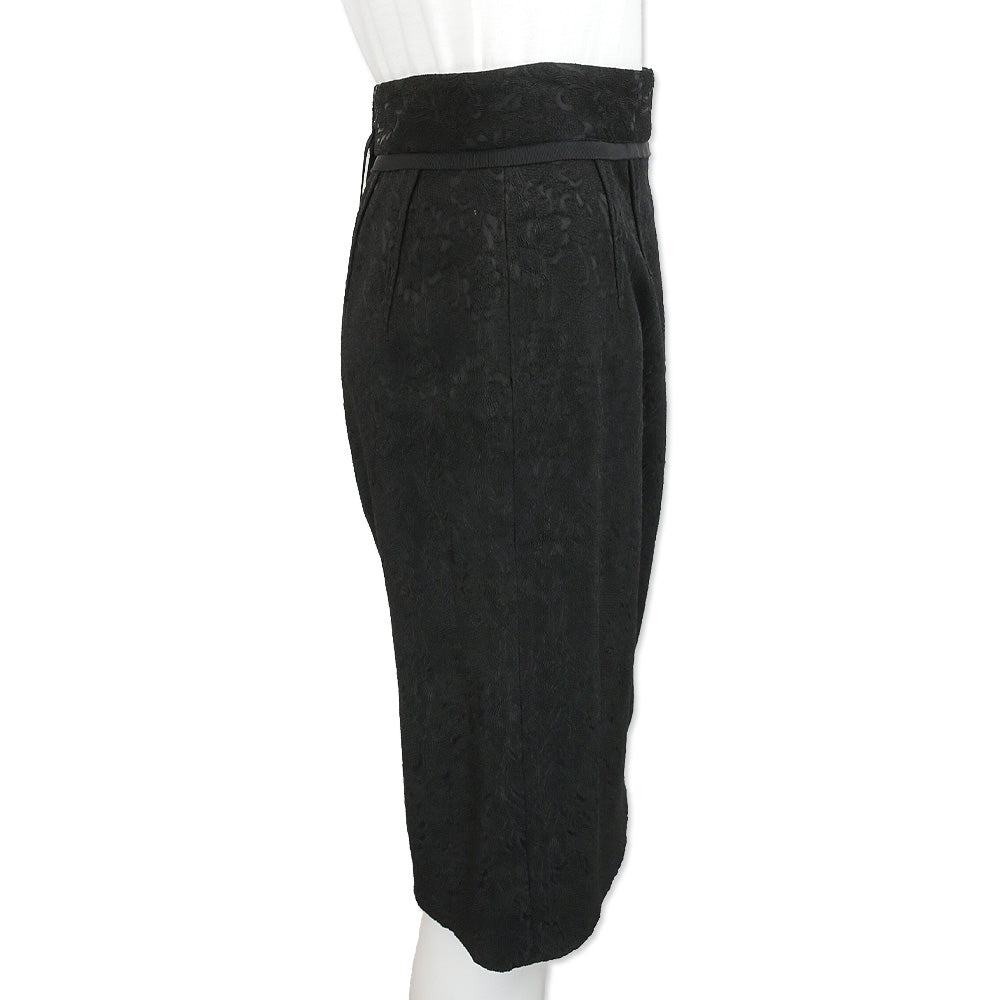Dolce & Gabbana skirt, Black Floral Embroidered, Midi Skirt, designer apparel, acetate blend, black ribbon trim, Made in Italy, authentic Dolce & Gabbana, pre-owned luxury, size 44, elegant skirt.