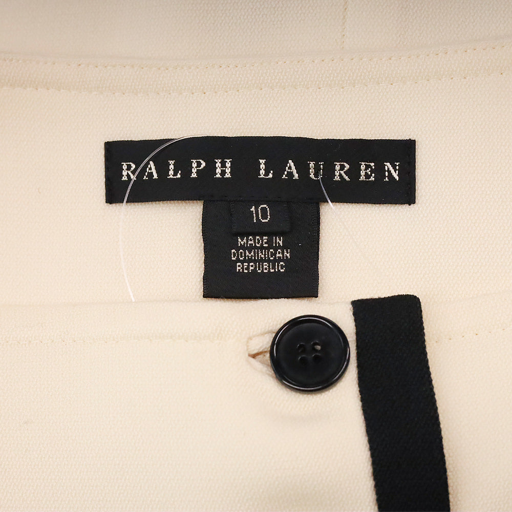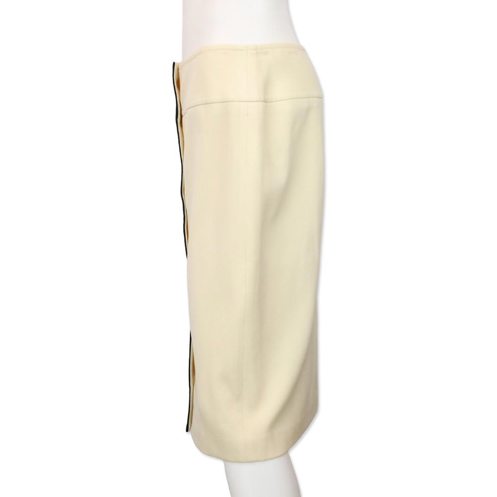 Ralph Lauren Black Label Cream/Black Trim Wool Button Front Midi Skirt