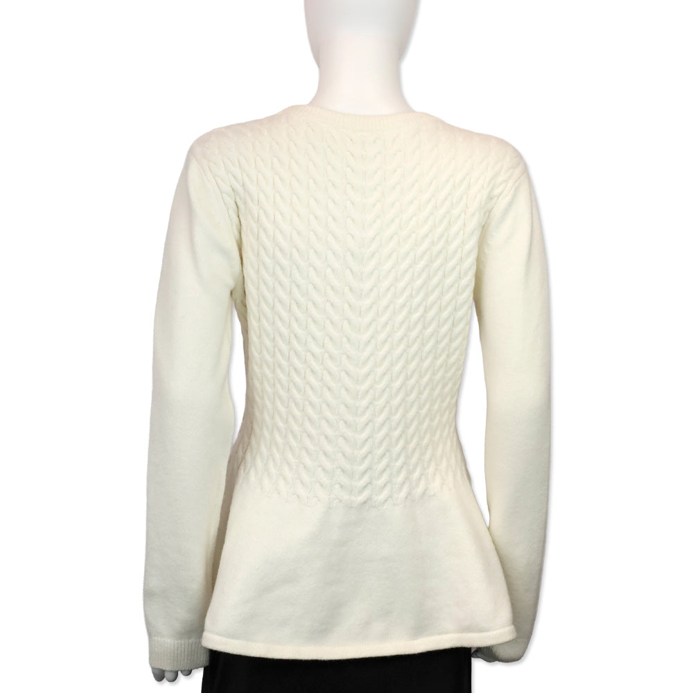 • Details: Cable Knit, Peplum Silhouette, Mock Neck (Round), Ribbed Trims, Long Sleeves