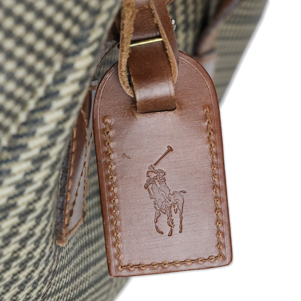 Polo Ralph Lauren Tan Houndstooth Large Tote delivers vintage Americana charm with its spacious 14.5" silhouette and iconic equestrian-inspired design. This roomy weekend carryall features antiqued gold hardware, durable canvas construction, and includes the original horsehair brush and hang tag for collector appeal.