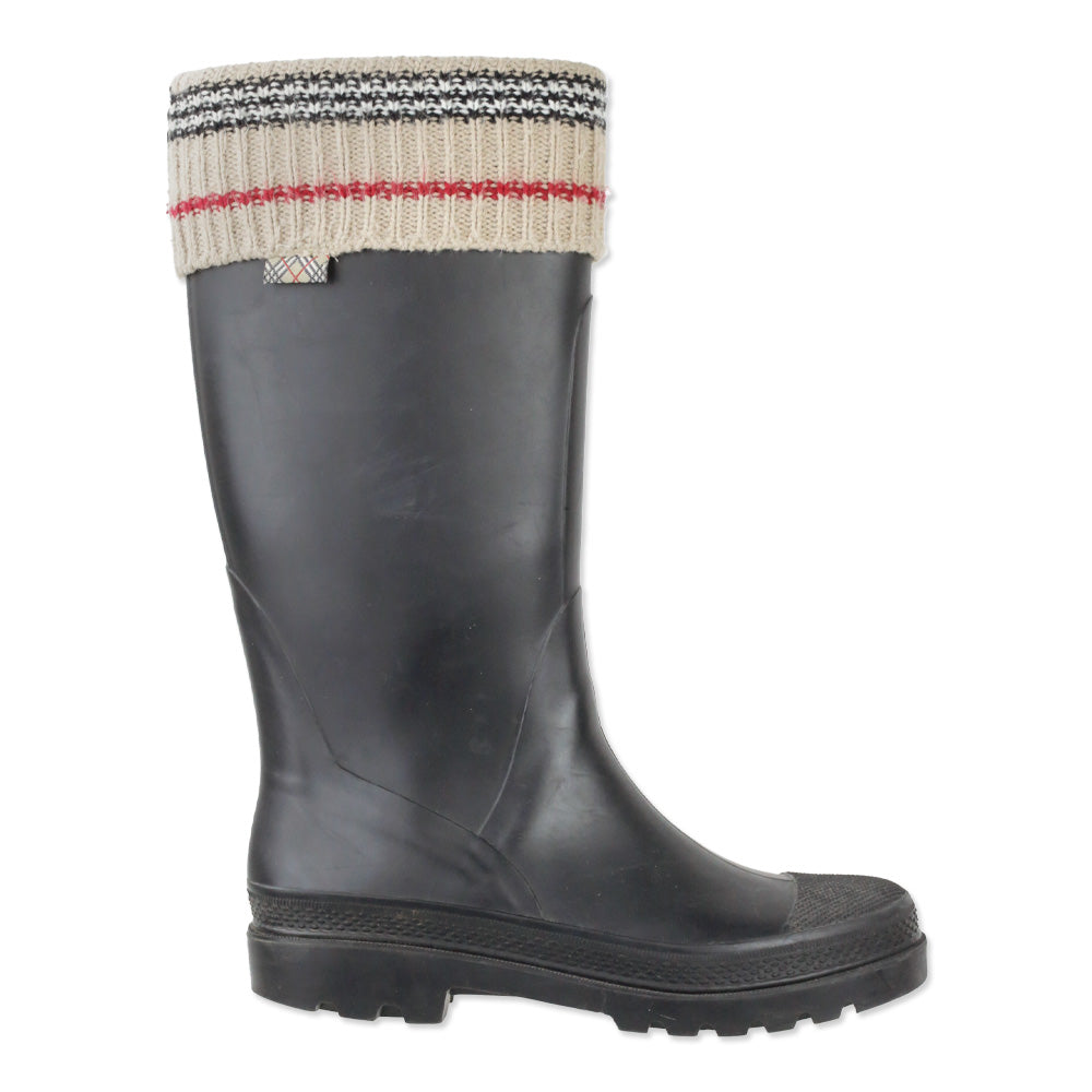 Burberry Black Rubber Rain Boot with Check Knit Trim