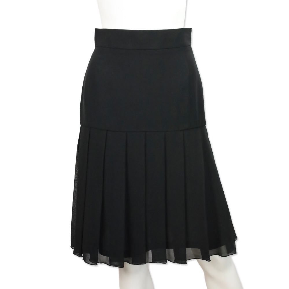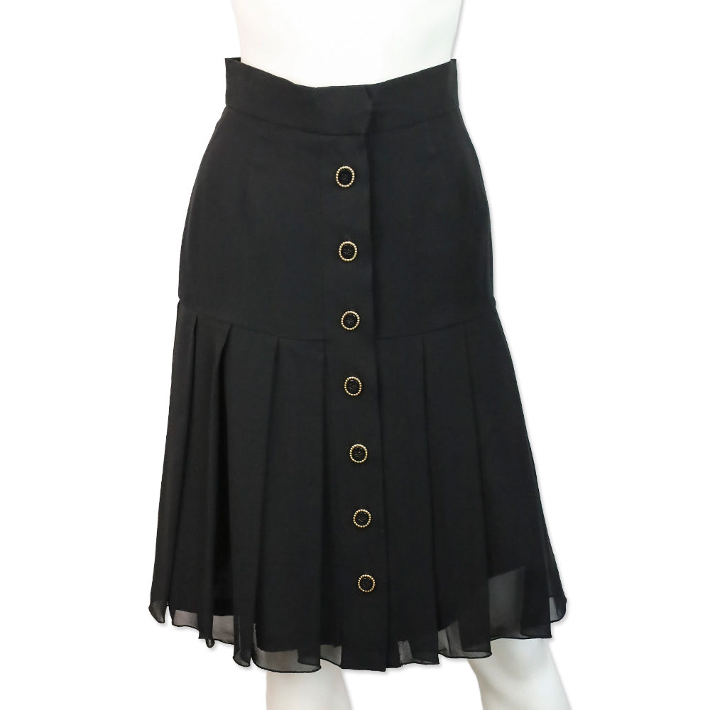 Karl Lagerfeld Black Silk Button Back Pleated Midi Skirt