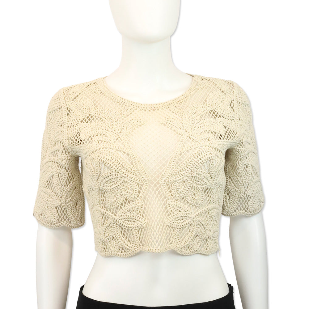 Maje Beige Ibiza Collection Leona Open-Knit Crop Top