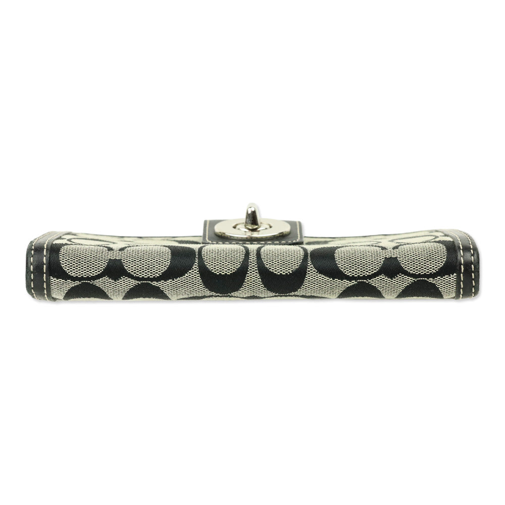 Coach Signature Black Canvas & Leather Trim Turnlock Trifold Wallet