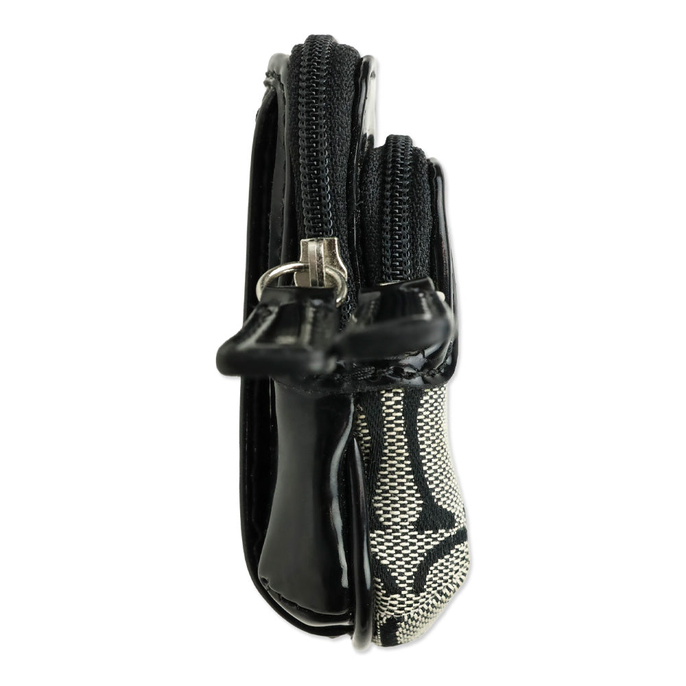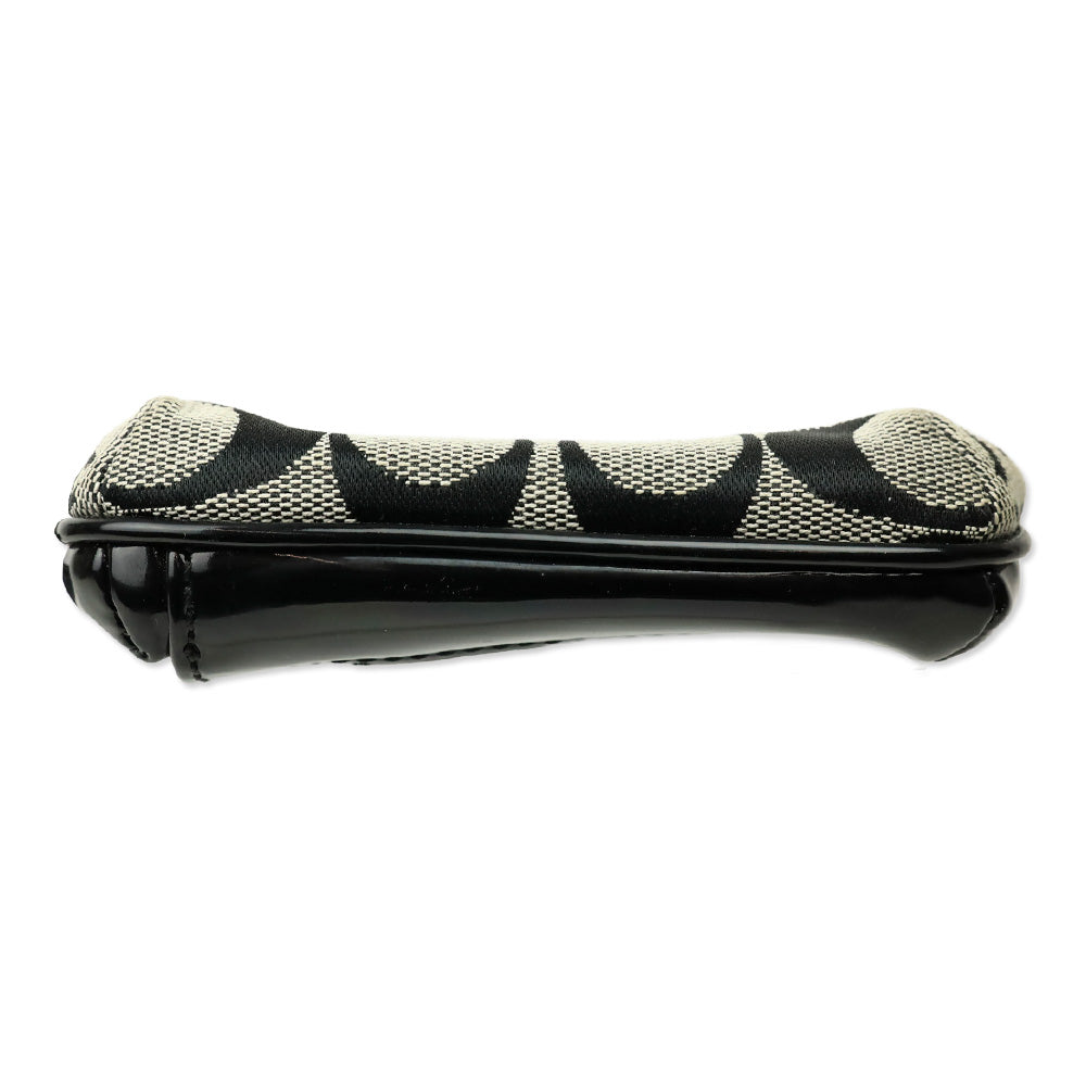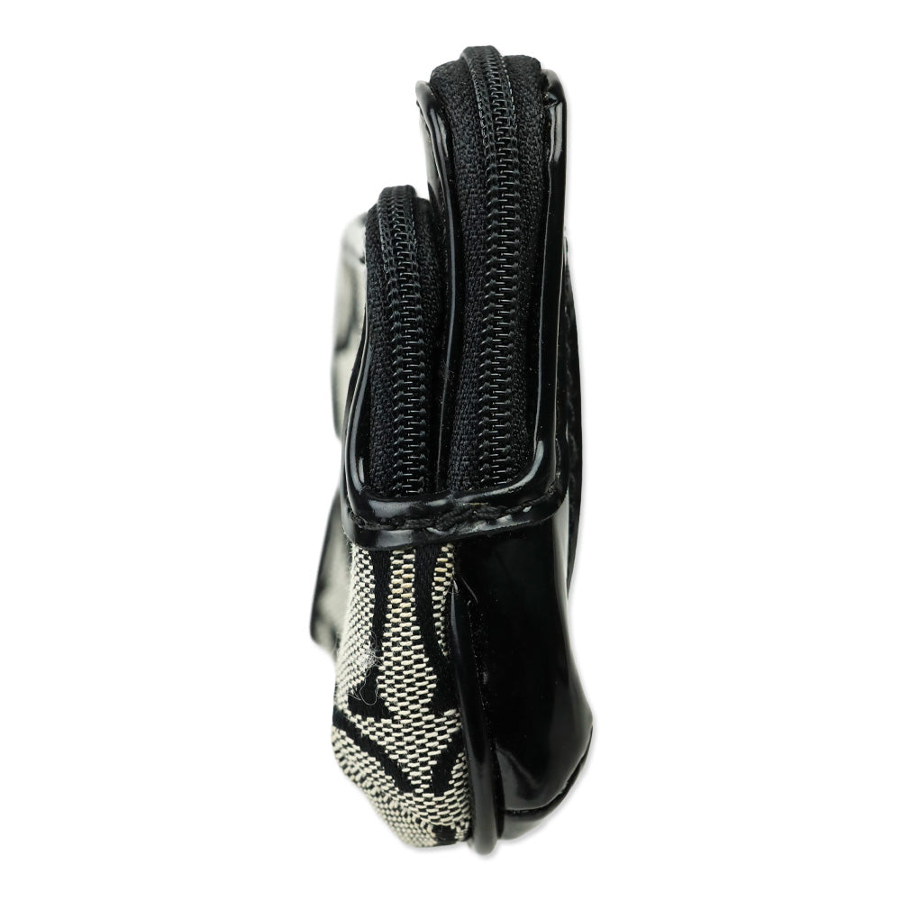 Coach Signature Black Monogram Canvas & Patent Leather Double Zip Mini Coin Purse