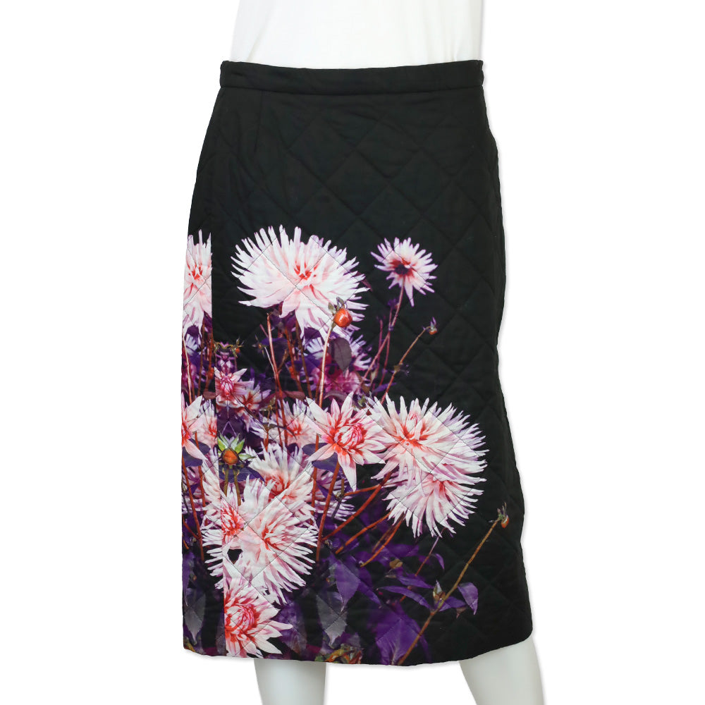 Dries Van Noten Black Dahlia Print Quilted Midi Skirt