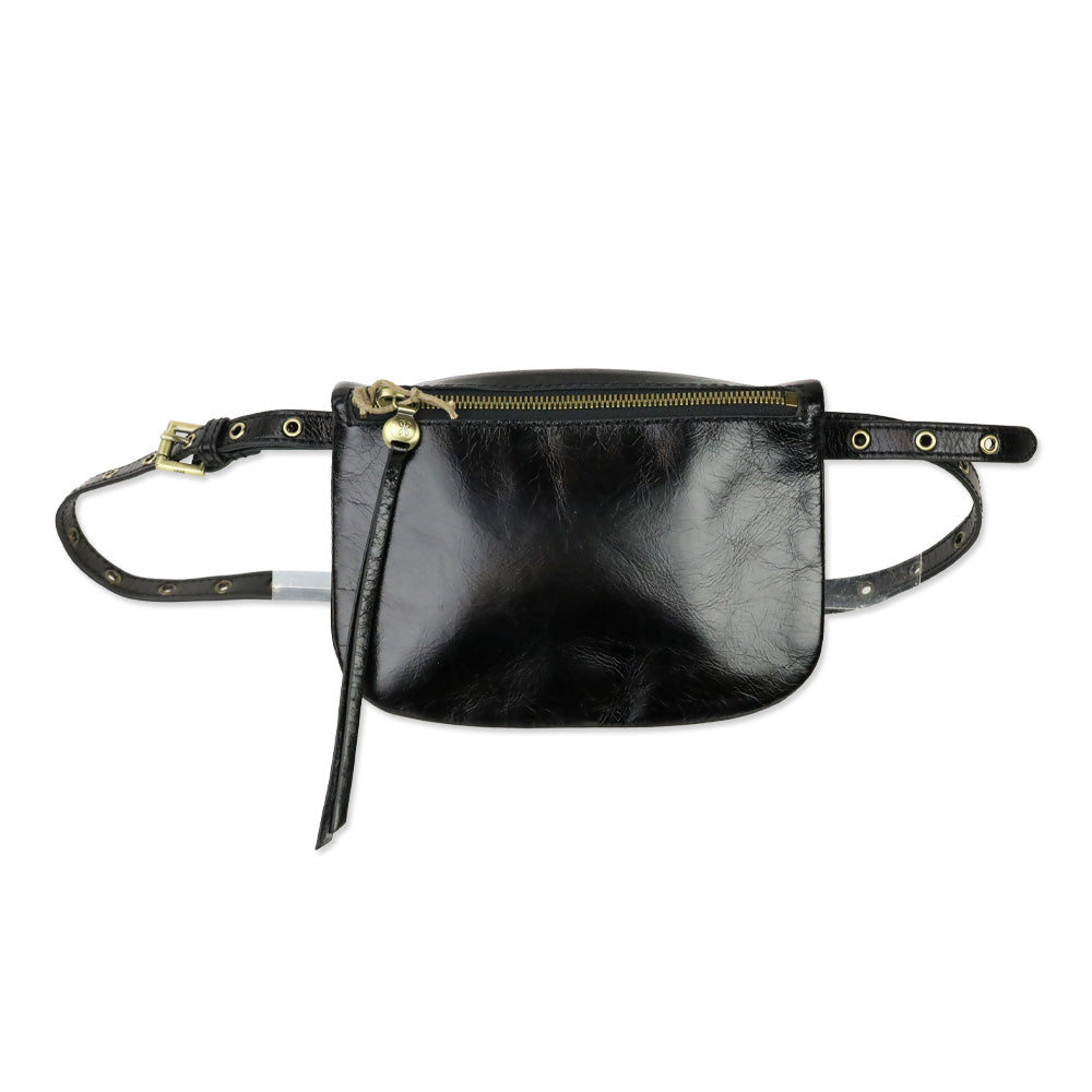 Hobo Black Crinkle Patent Leather Saunter Belt Bag
