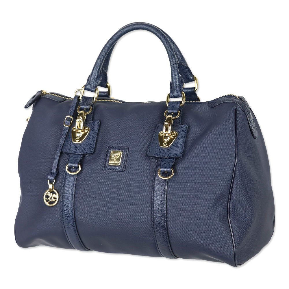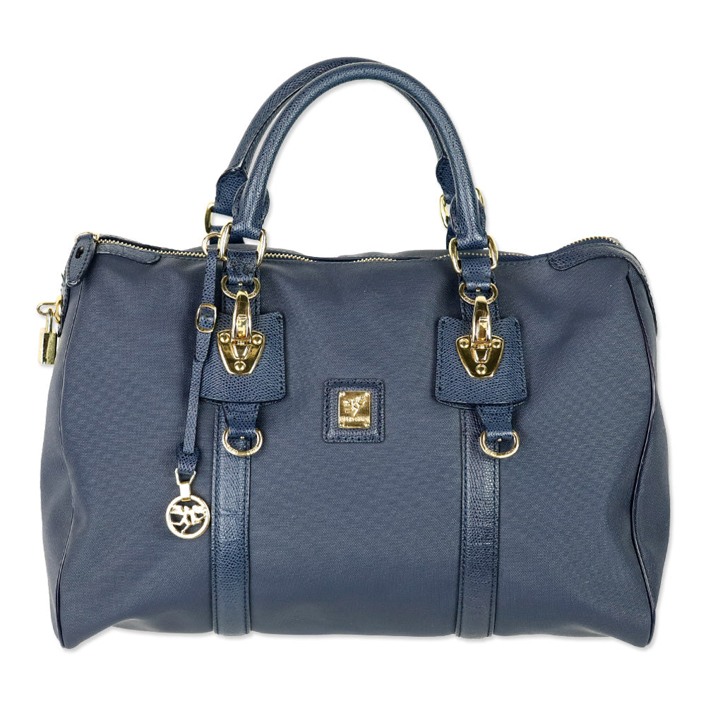Piero Guidi Blue Coated Canvas Top Handle Satchel