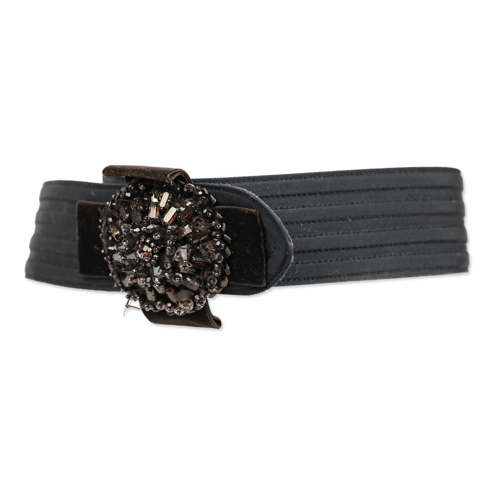 Carolina Herrera grosgrain belt, black beaded belt, floral appliqué, size M designer belt, women's luxury accessories, good condition Herrera Sophisticated accessory, elegant design, bohemian-chic style, unique embellishment, timeless fashion, high-end craftsmanship