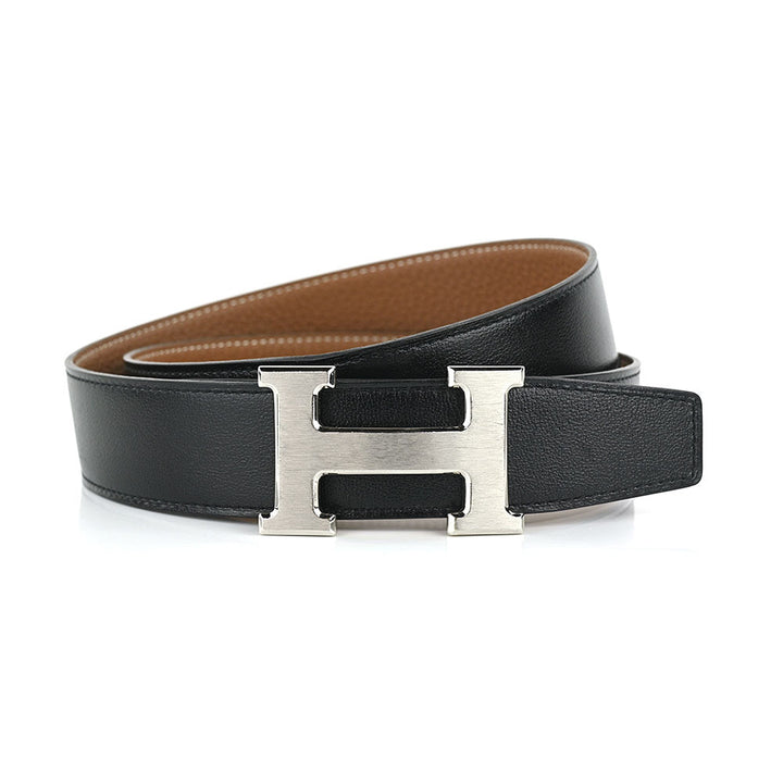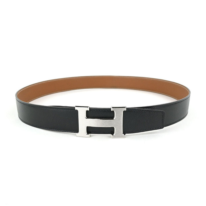 Hermès Mini Constance Belt Kit featuring a black and brown reversible belt with brushed silver buckle.