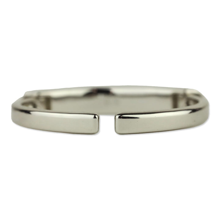 This Alexis Bittar cuff showcases modern artistry with its vibrant neon yellow lucite and sleek silver-tone framing. The curved rectangular design creates a bold architectural statement for contemporary fashion ensembles.